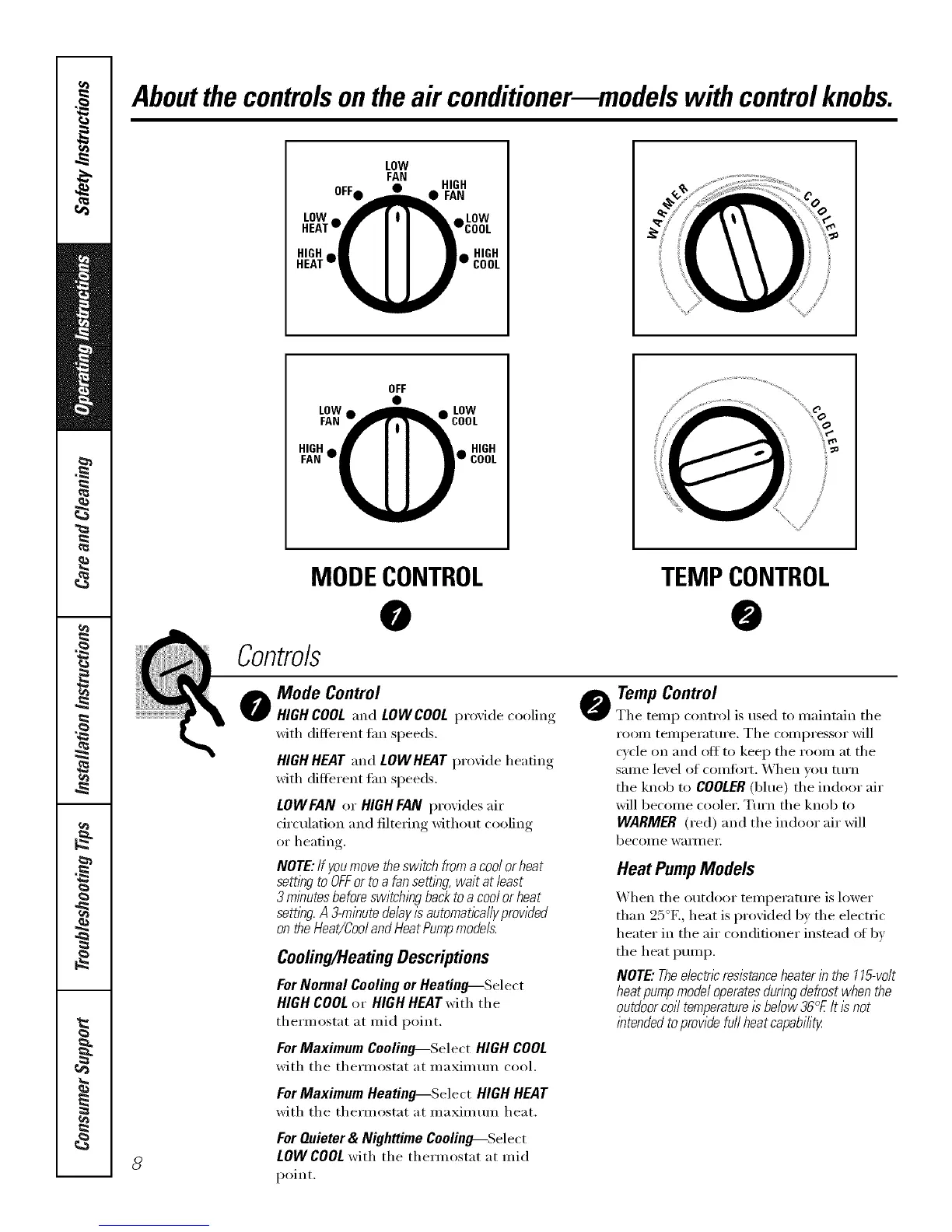 Aboutthecontrolsontheair conditioner--modelswith controlknobs.