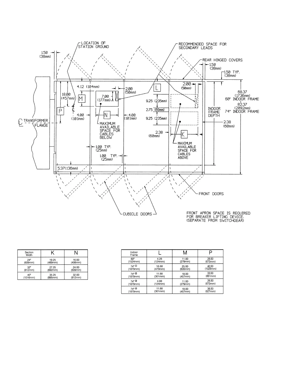 NEMA 3R outdoor, non-walk-in — floor plan and cable space details