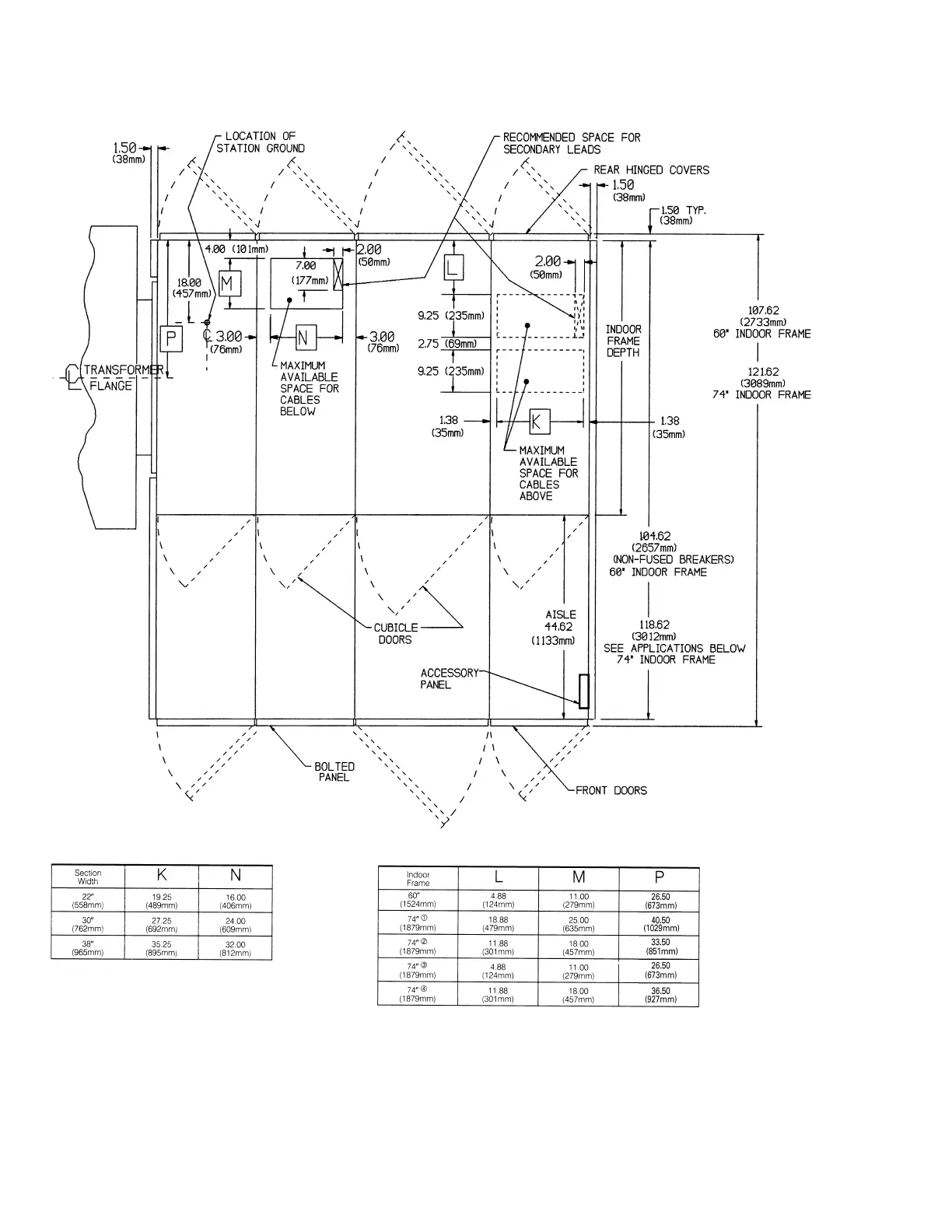 NEMA 3R outdoor, walk-in protected aisle — floor plan and cable space details