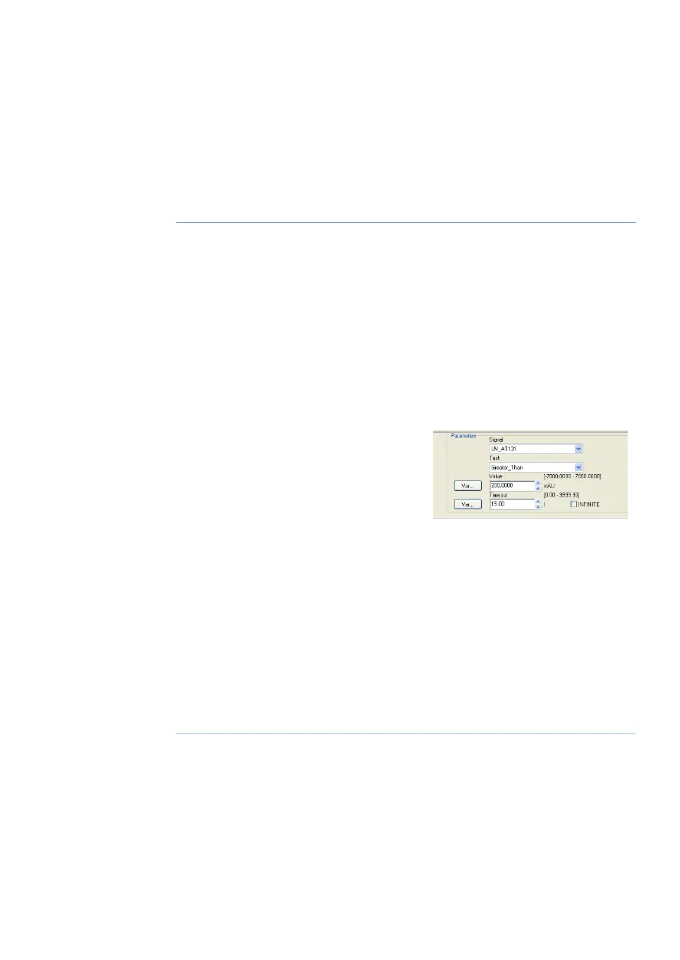 readings are Greater_Than a set limit, in this case 200 mAU. Timeout is