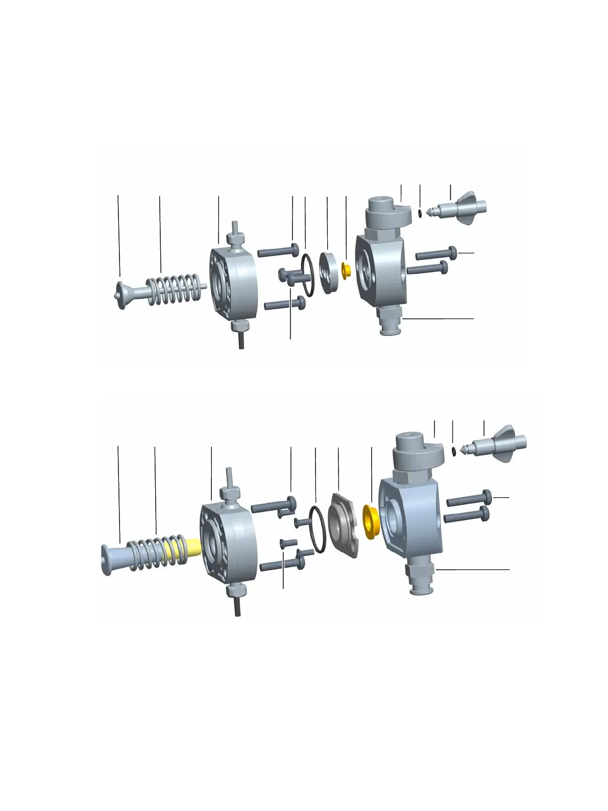 The illustrations below show the parts of the pump heads of the pumps P9 and P9H.