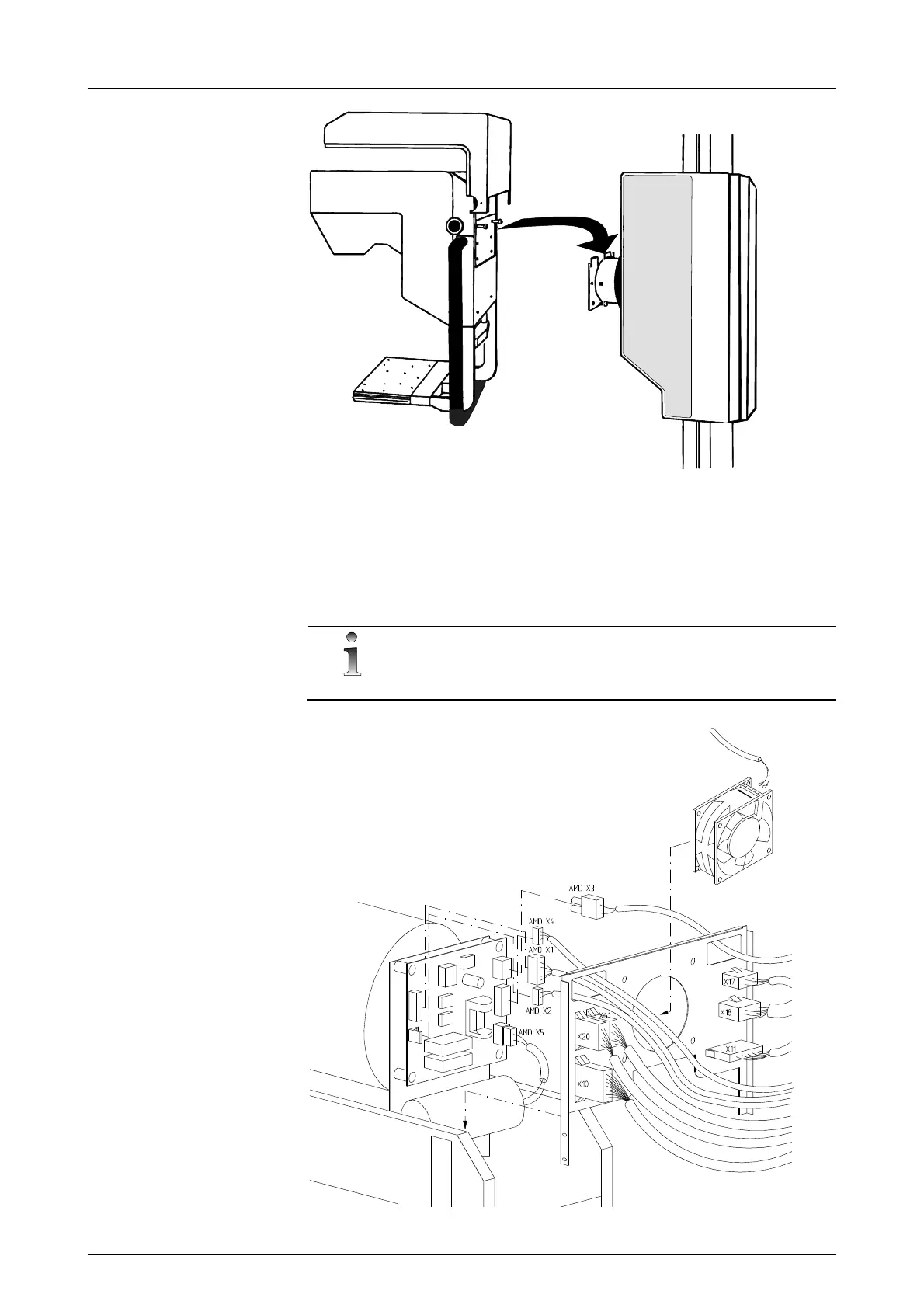 motor driver (AMD) board inside the C- arm (X61 is only on Alpha RT