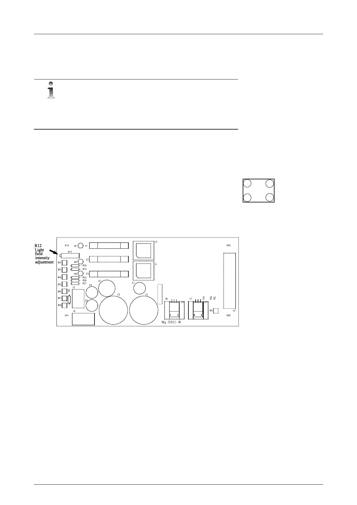 collimator lamp voltage at 11 V. Adjust and check the light intensity as