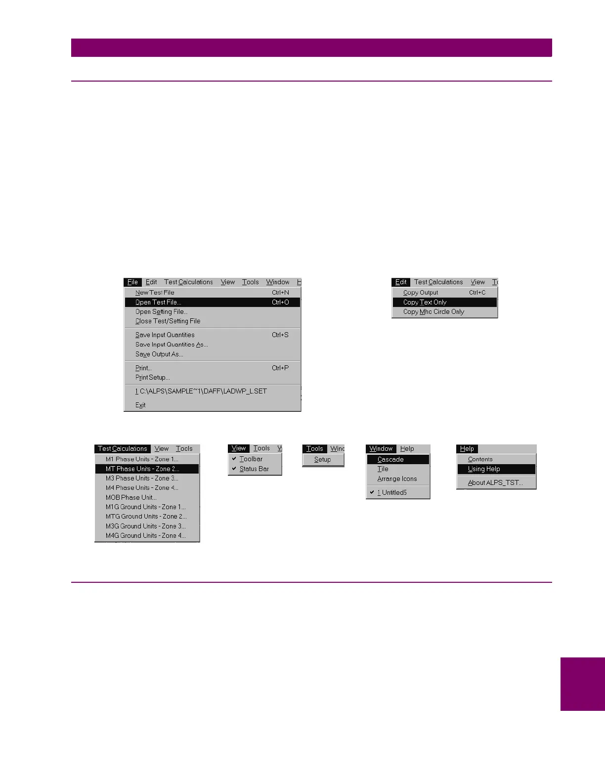 ALPS Test is used to generate test data for the measuring units in the ALPS relay for the settings specified by the user. This