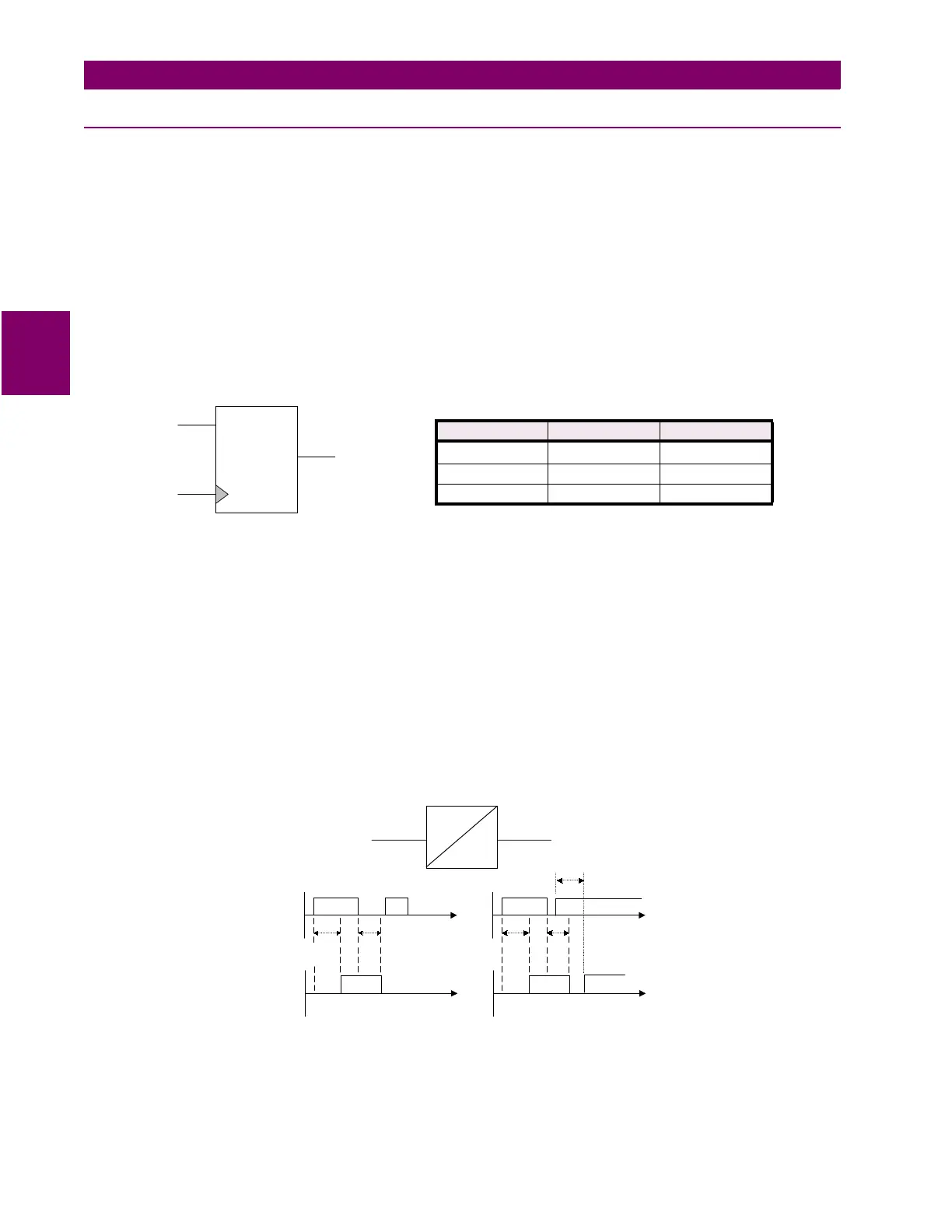 how the timer functions. If the input is high (binary 1) for a time equal to the pickup delay, the output becomes high (binary
