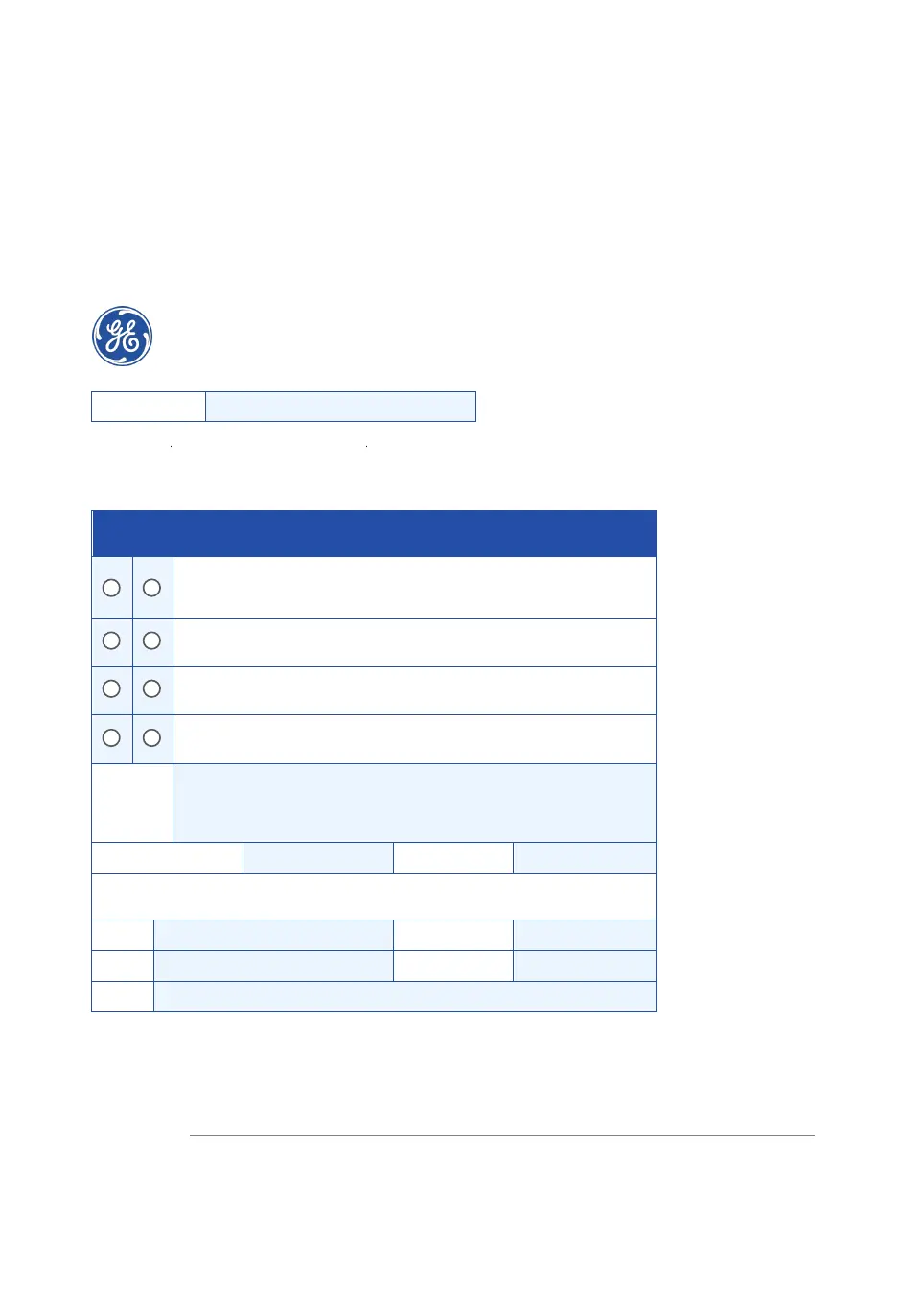 To make the mutual protection and safety of GE service personnel and our customers, all equipment and work areas must be