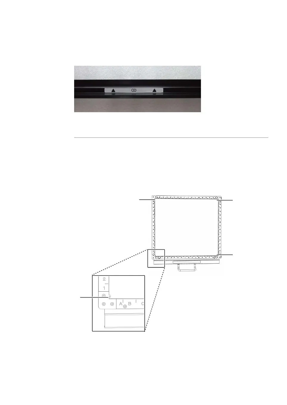 grooves on the fluor stage. The following illustration shows the positions of the grooves