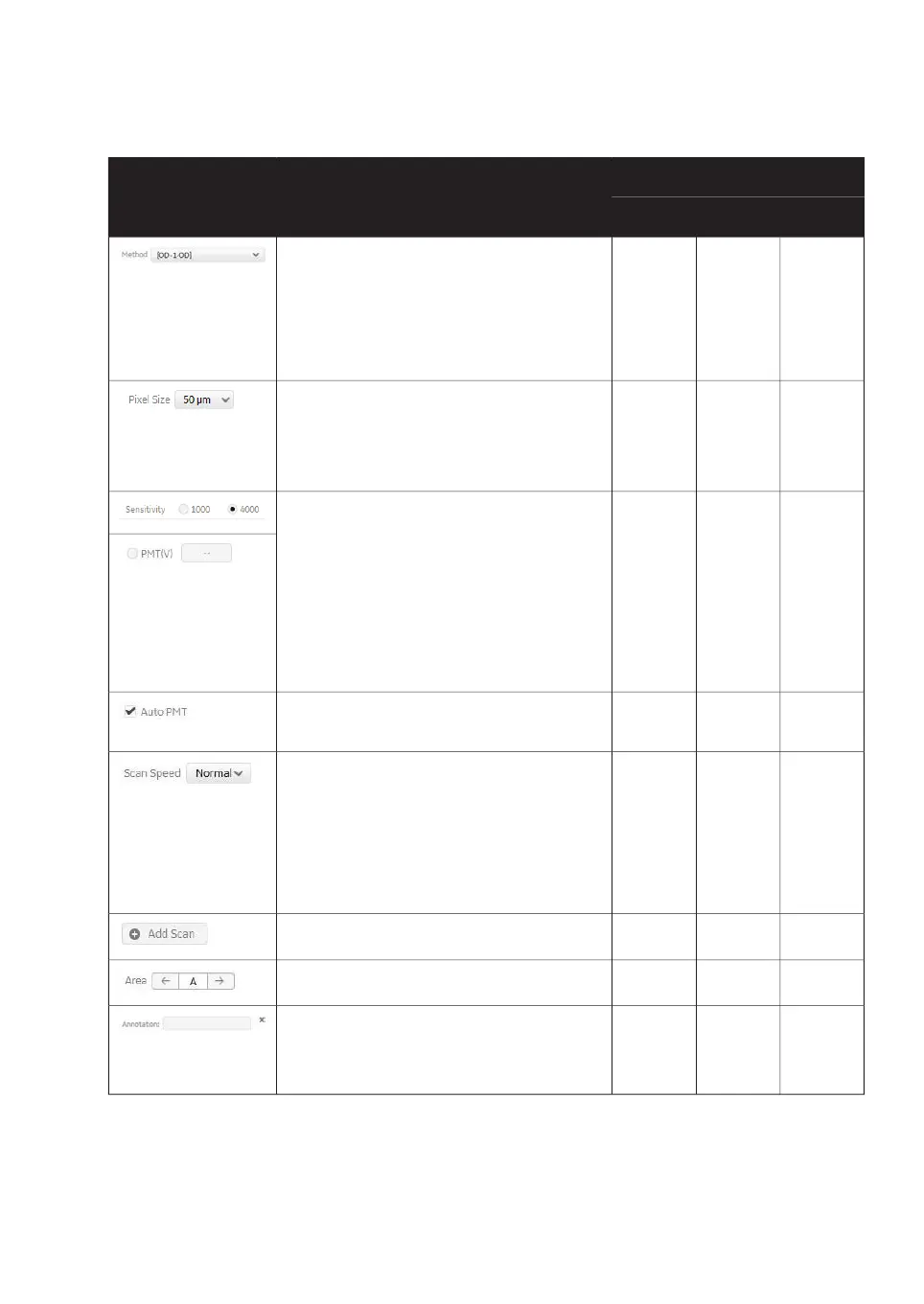 Scanning modeDescriptionScan setting