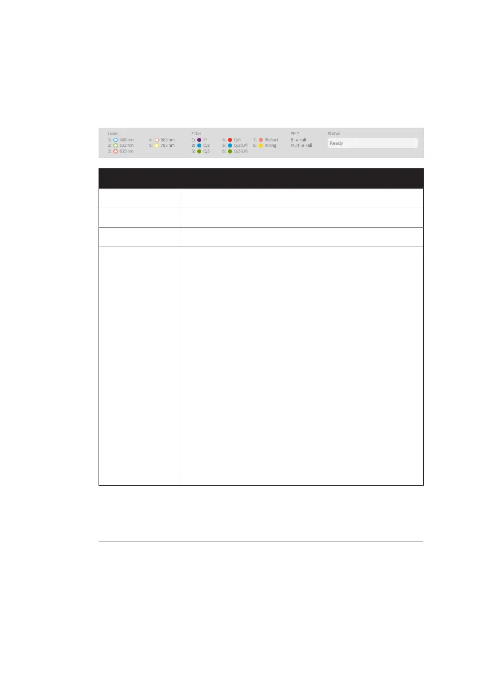 The instrument status pane shows the status of the lasers, filters and photo-multiplier