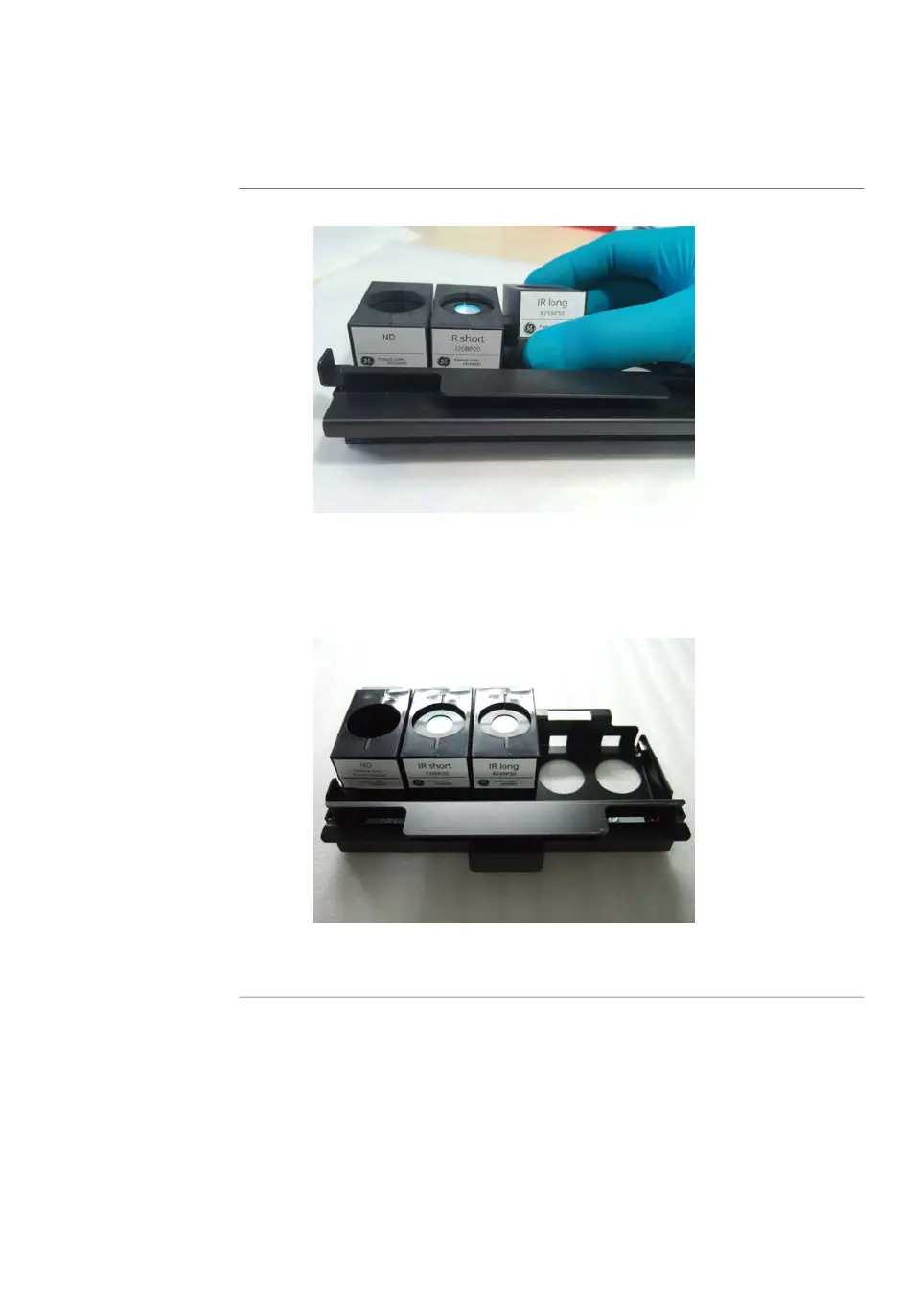 Slide the holder on the filter module to the right to close the filter module.