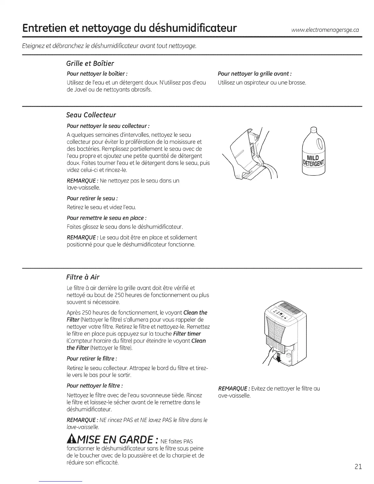 REPIARQUE:Ne nettoyez pas le seaudans un