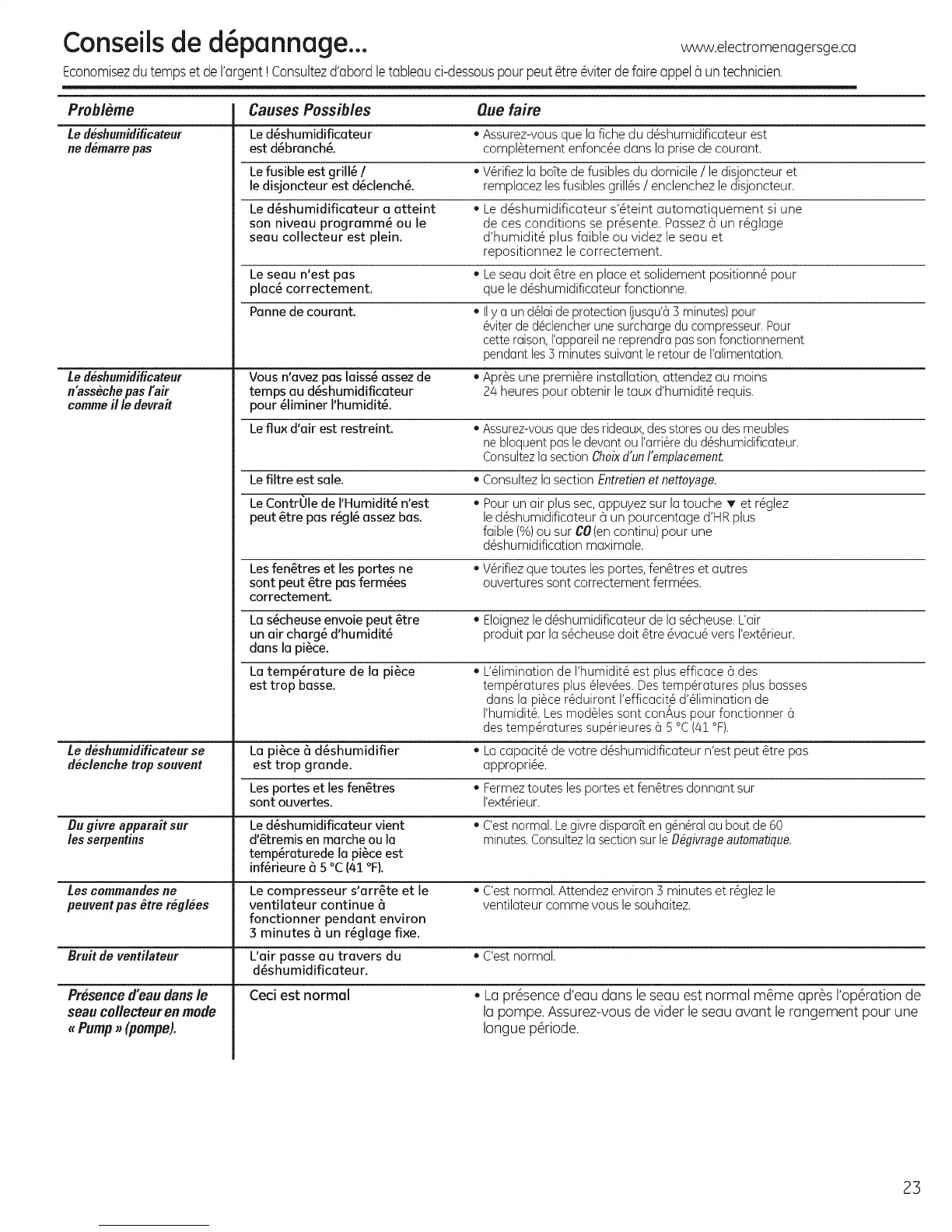 Economisez du temps et de I'argent !Consultez d'abord le tableau ci-dessous pour peut _tre _viter de faire appel 6 un technicien.