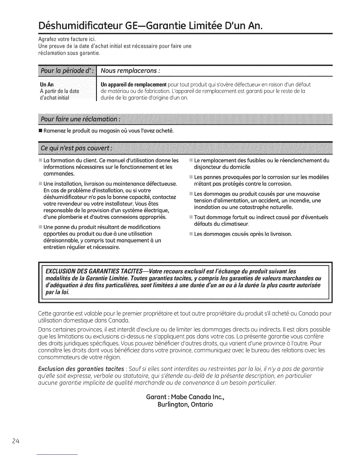 Garant : Mabe Canada Inc.,