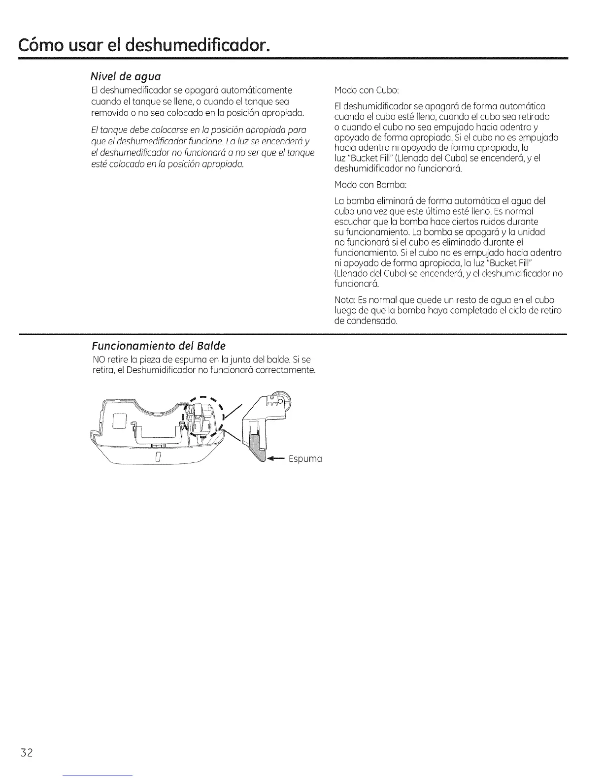 (Llenadodel Cubo)se encender@,y el deshumidificador no
