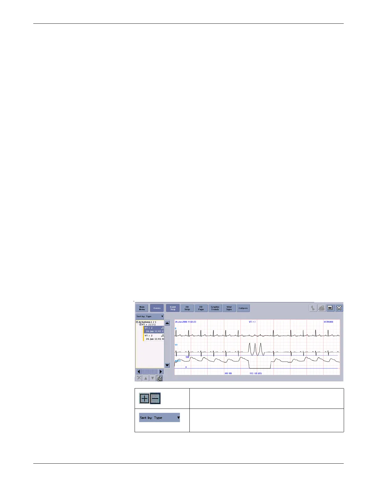 To review stored non-ECG parameter data, use the FD Strip and FD Page data