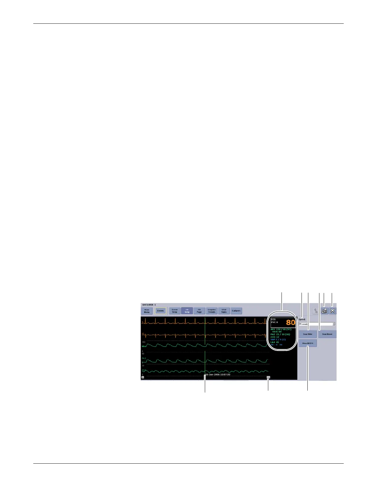 numeric data for all monitored parameters or all of the ECG waveforms and numeric