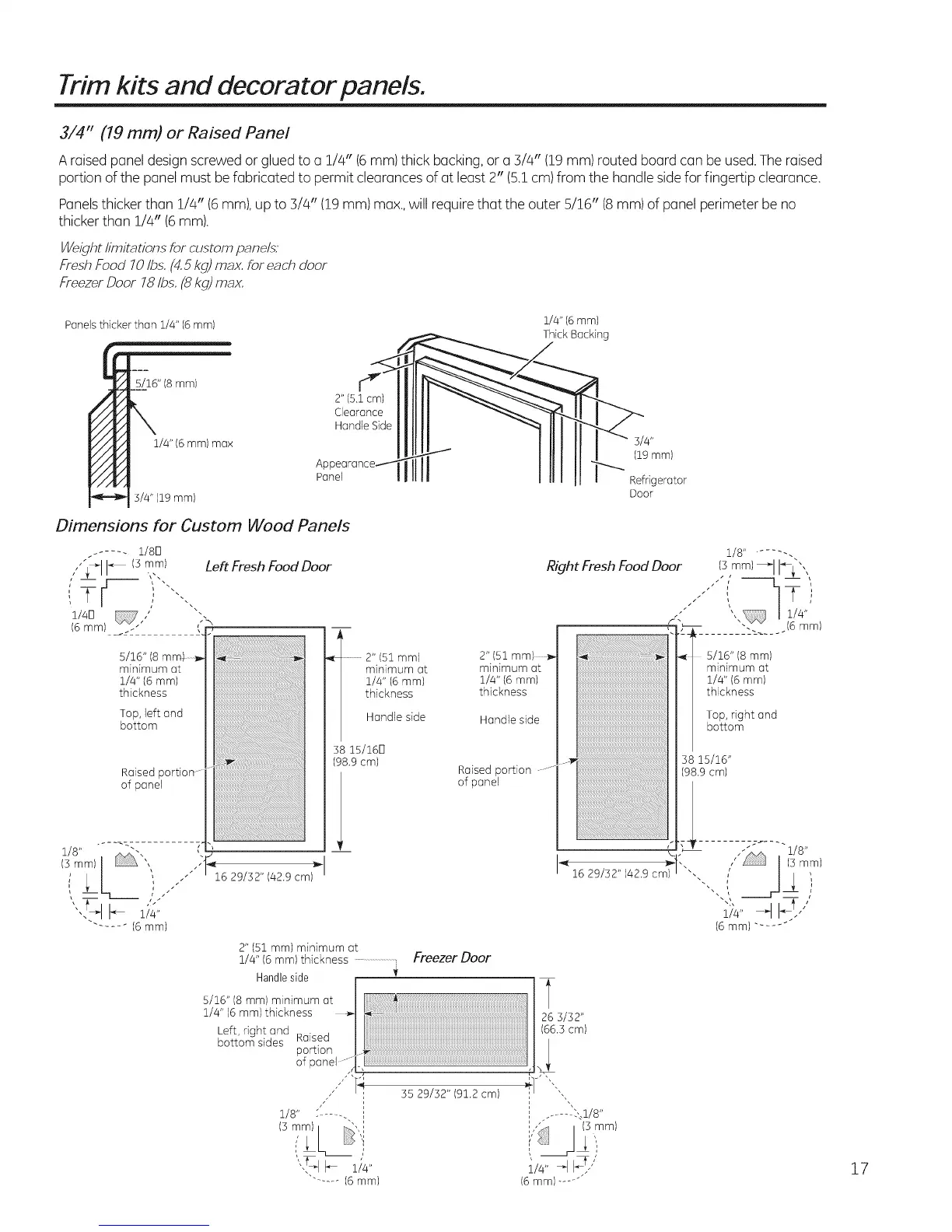 3/4" (19 mm) or Raised Panel