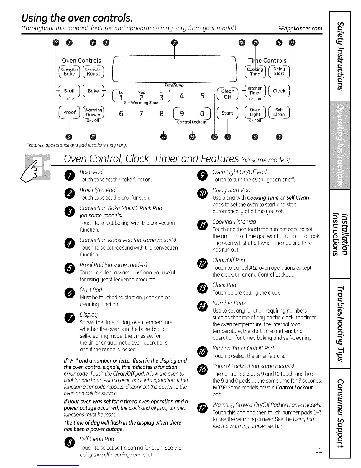 OvenControl,Clock,Timerand Featuresionsome models)