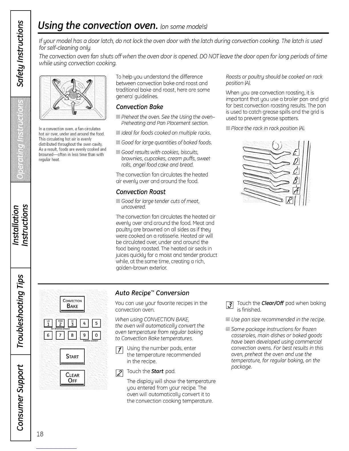 The convection oven fan shuts off when the oven door is opened. DO NOTleave the door open for long periods of time
