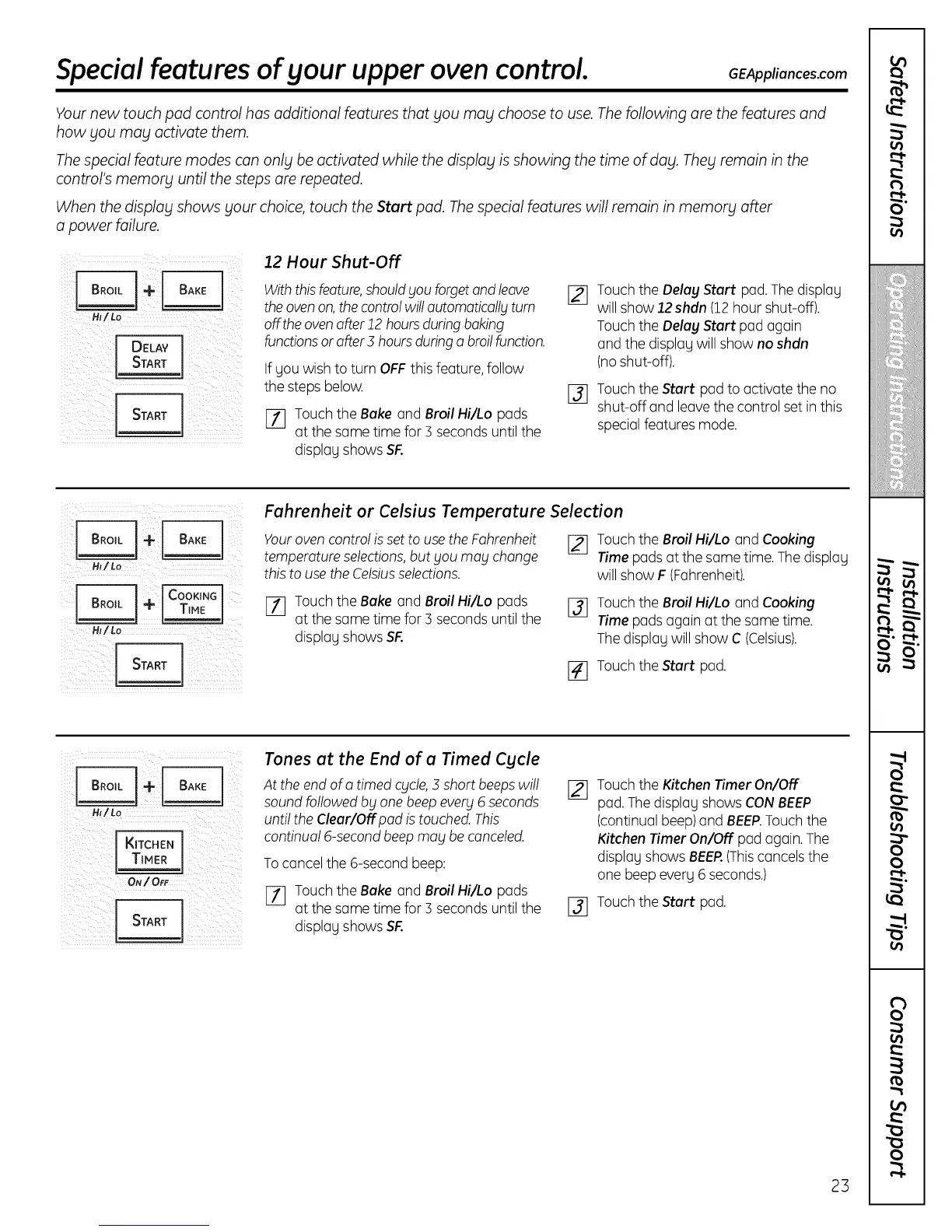 When the display shows gour choice, touch the Start pad. The special features will remain in memory after