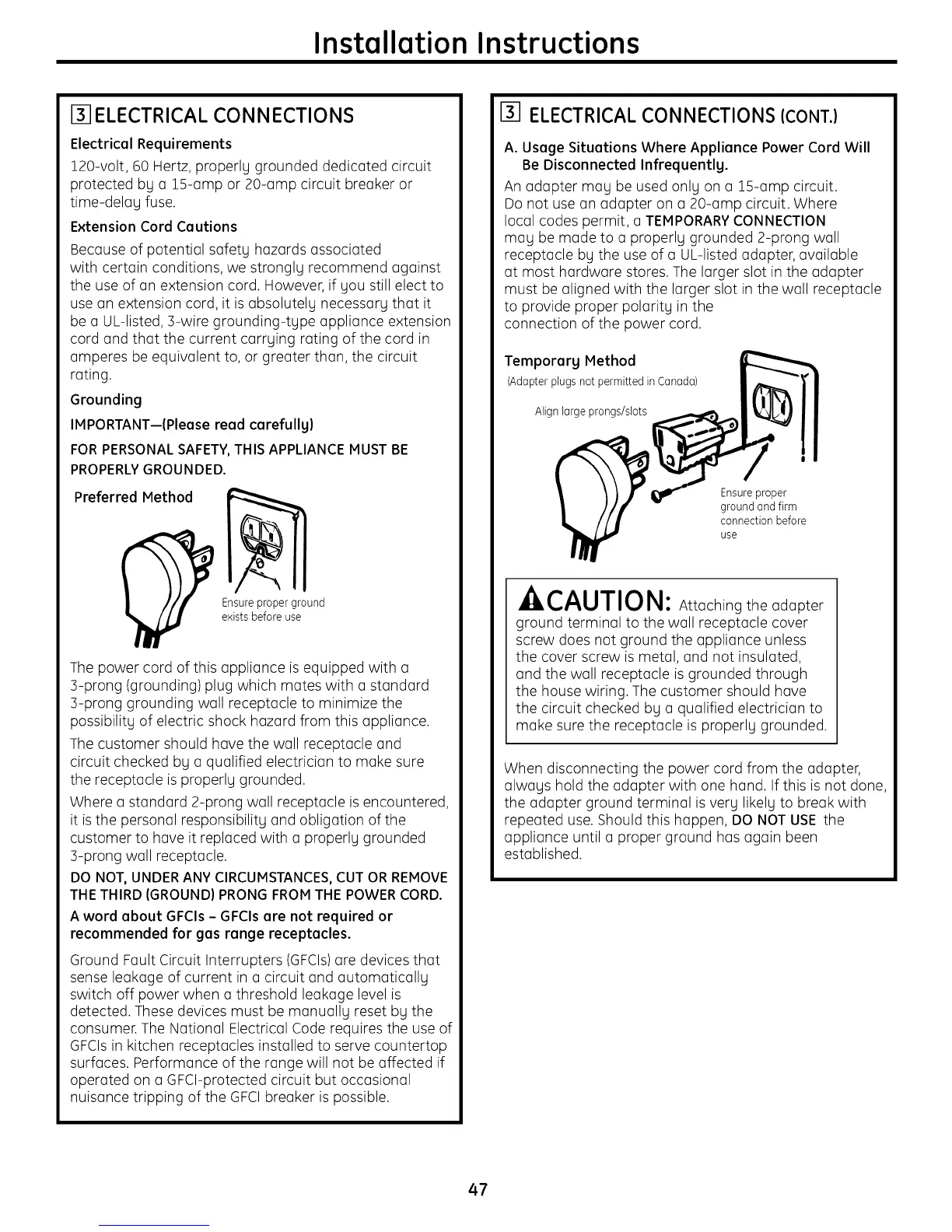 recommended for gas range receptacles.