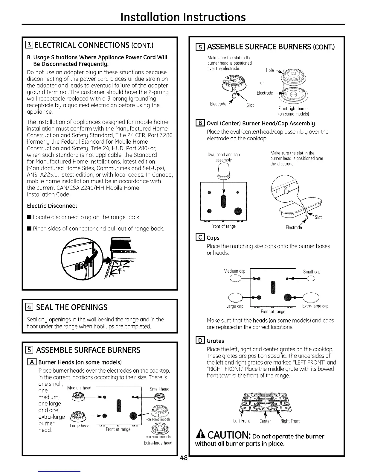 [] ASSEMBLE SURFACE BURNERS (CONT.)