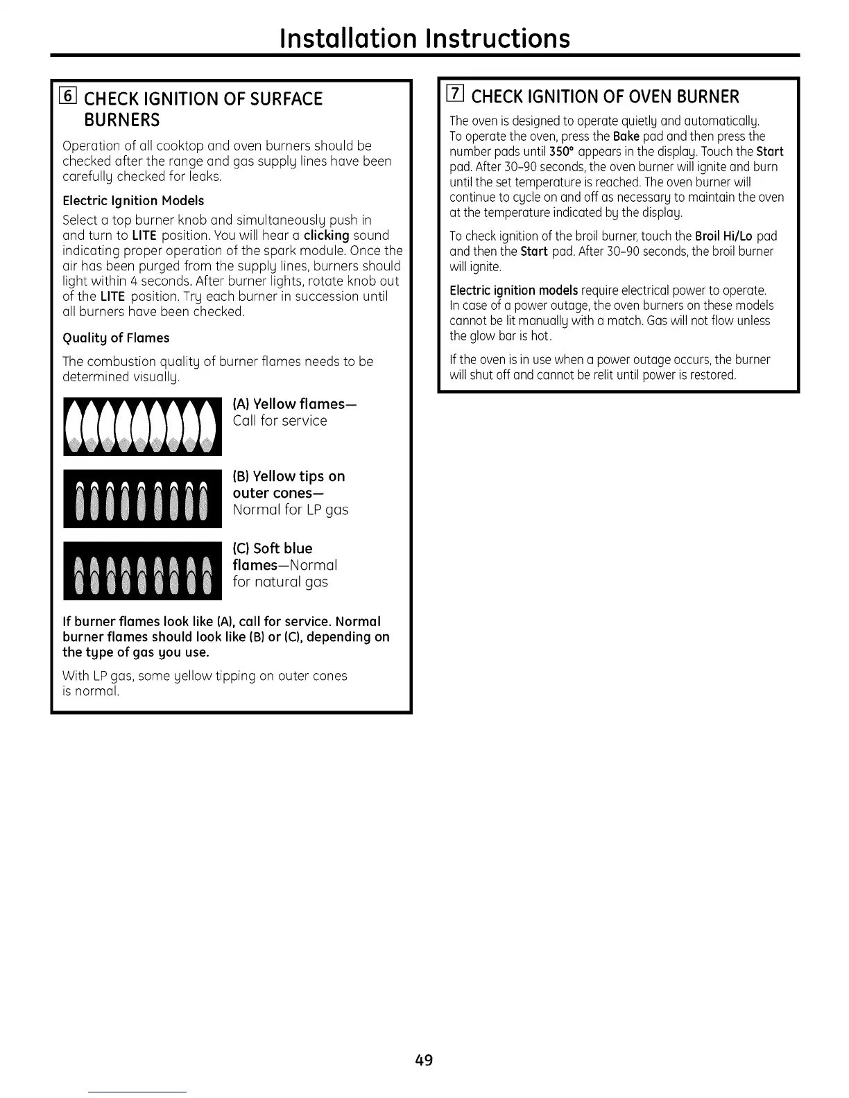 If burner flames look like (A),call for service. Normal