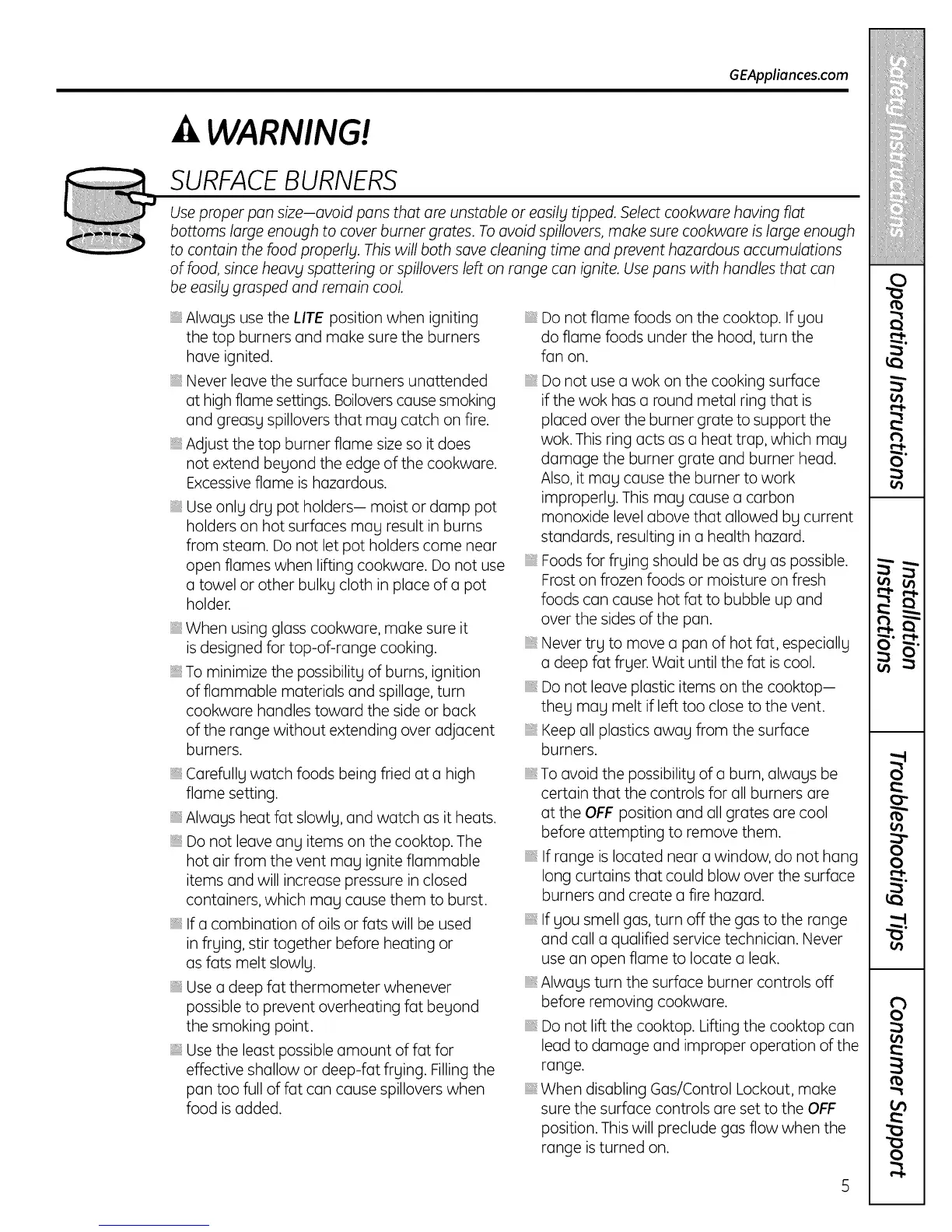 of food, since heavy spattering or spillovers left on range can ignite. Use pans with handles that can