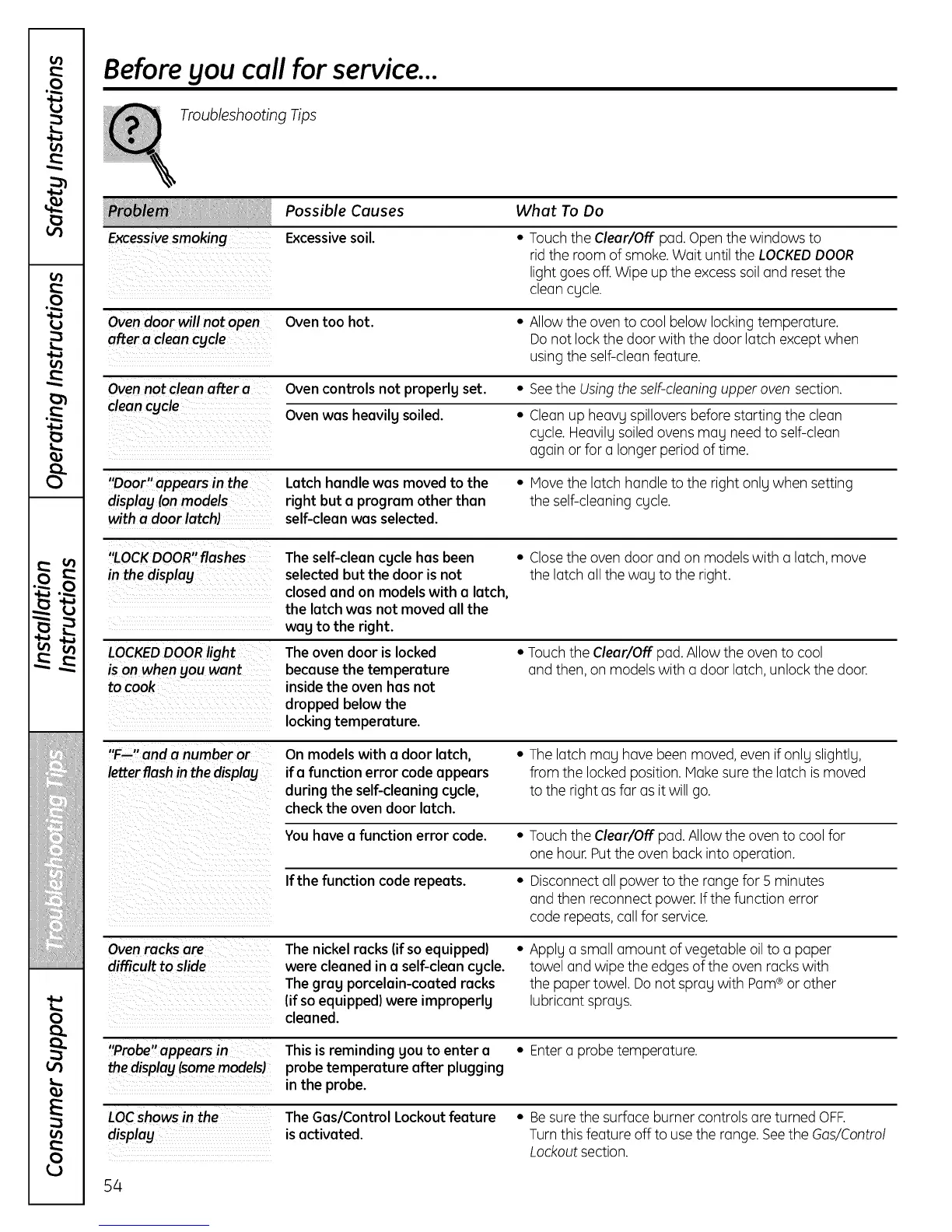 "F--" and a number or On models with a door latch, • The latch may hove been moved,even if only slightly,