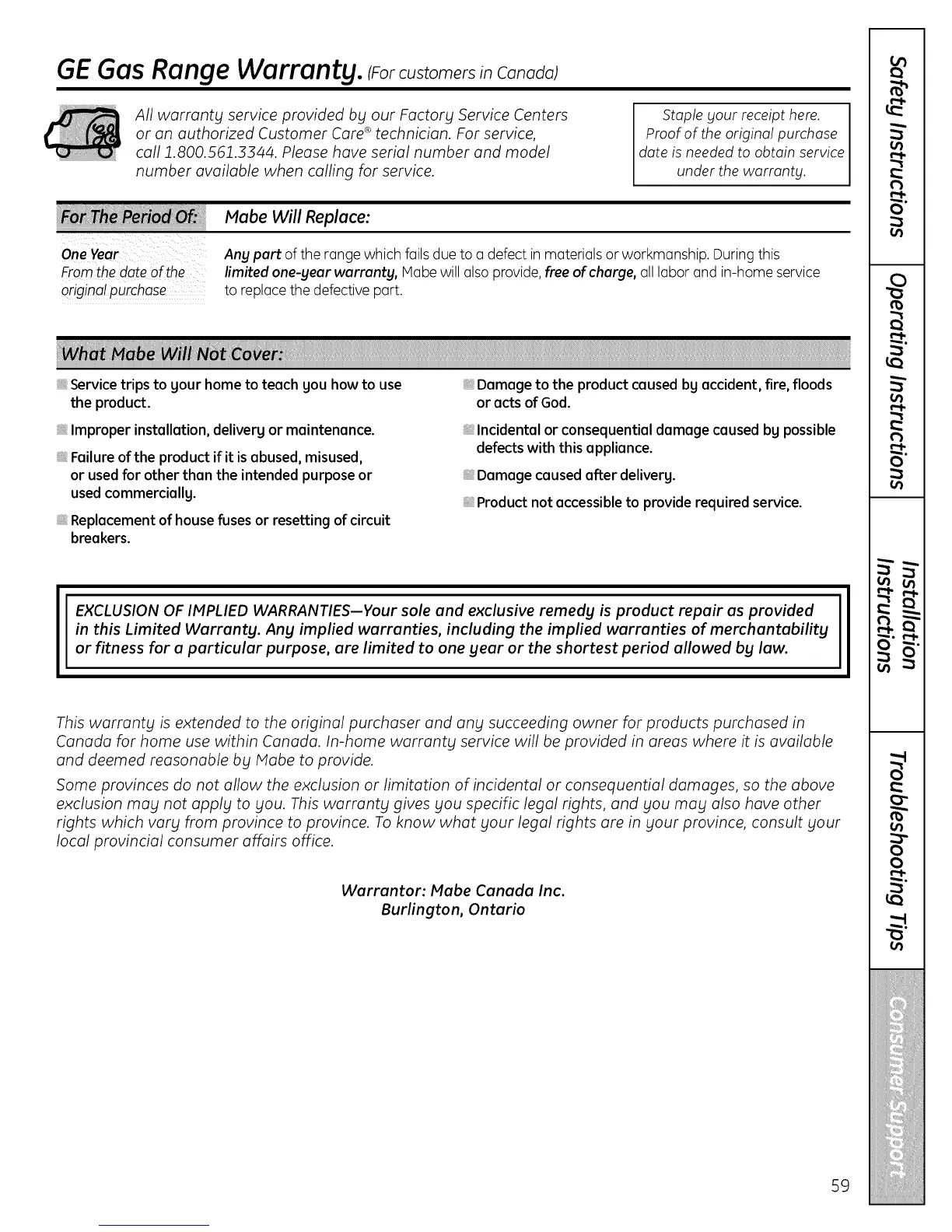 Canada for home use within Canada. In-home warranty service will be provided in areas where it is available