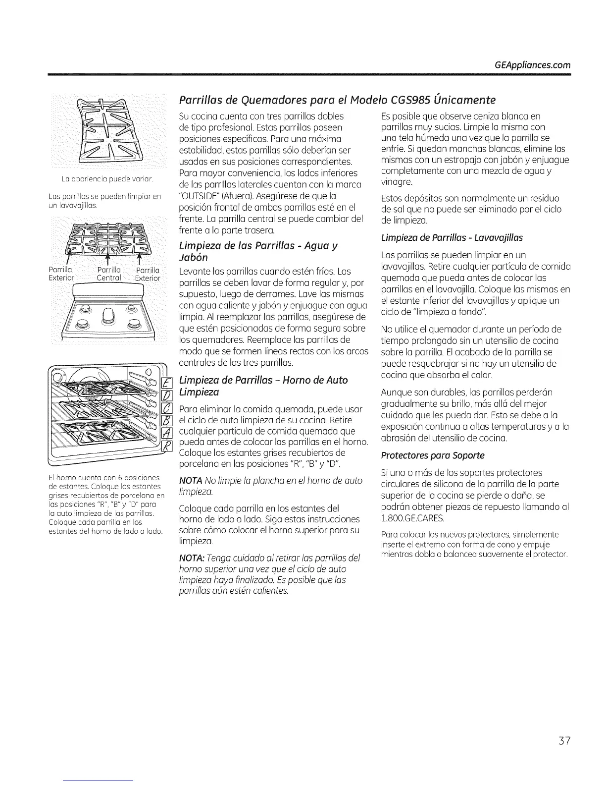 Parrillas de Quemadores para el Modelo CGS985 Onicamente