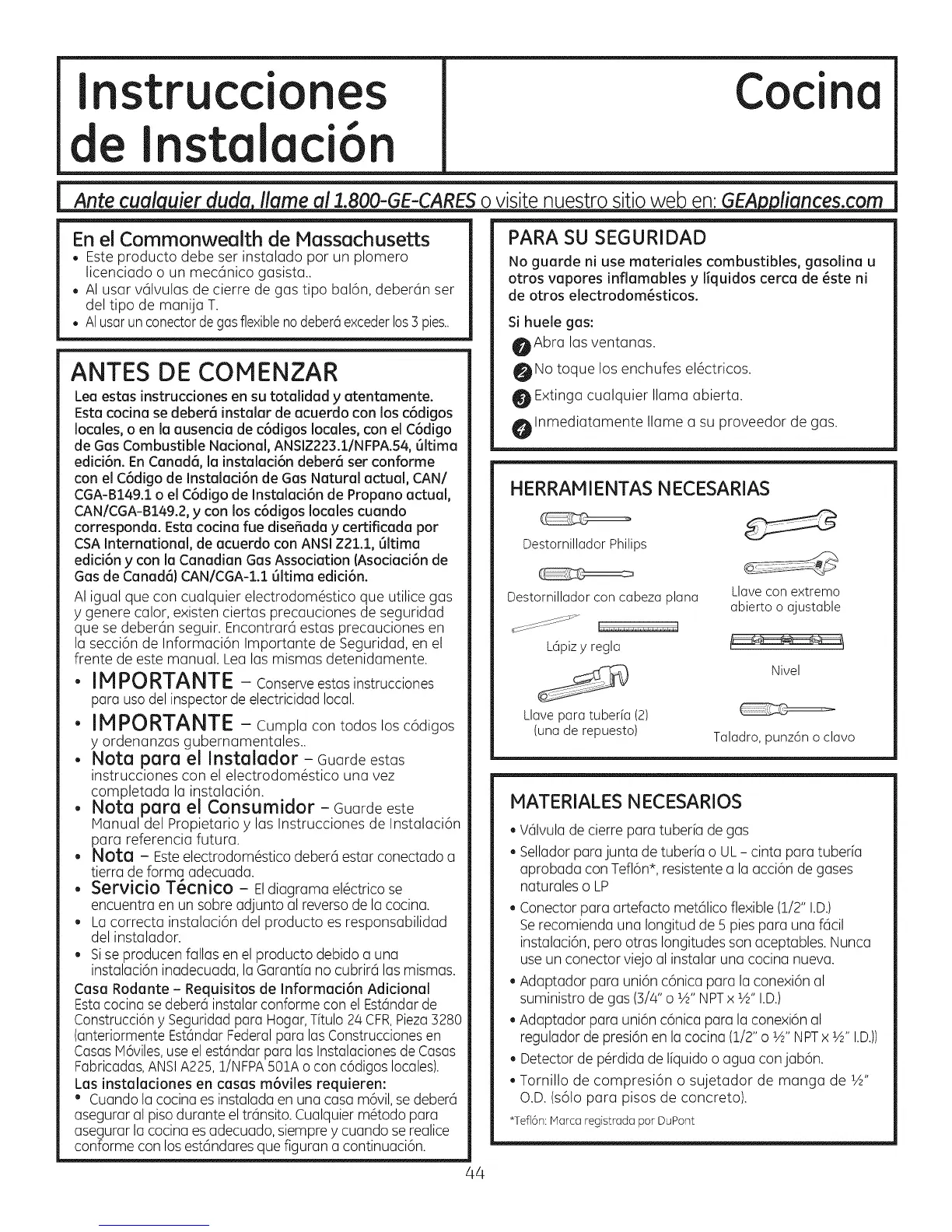 [ Ante cual uier duda Ilame a! 1.800-GE-CARESo visite nuestro sitio web en: GEA liances.com