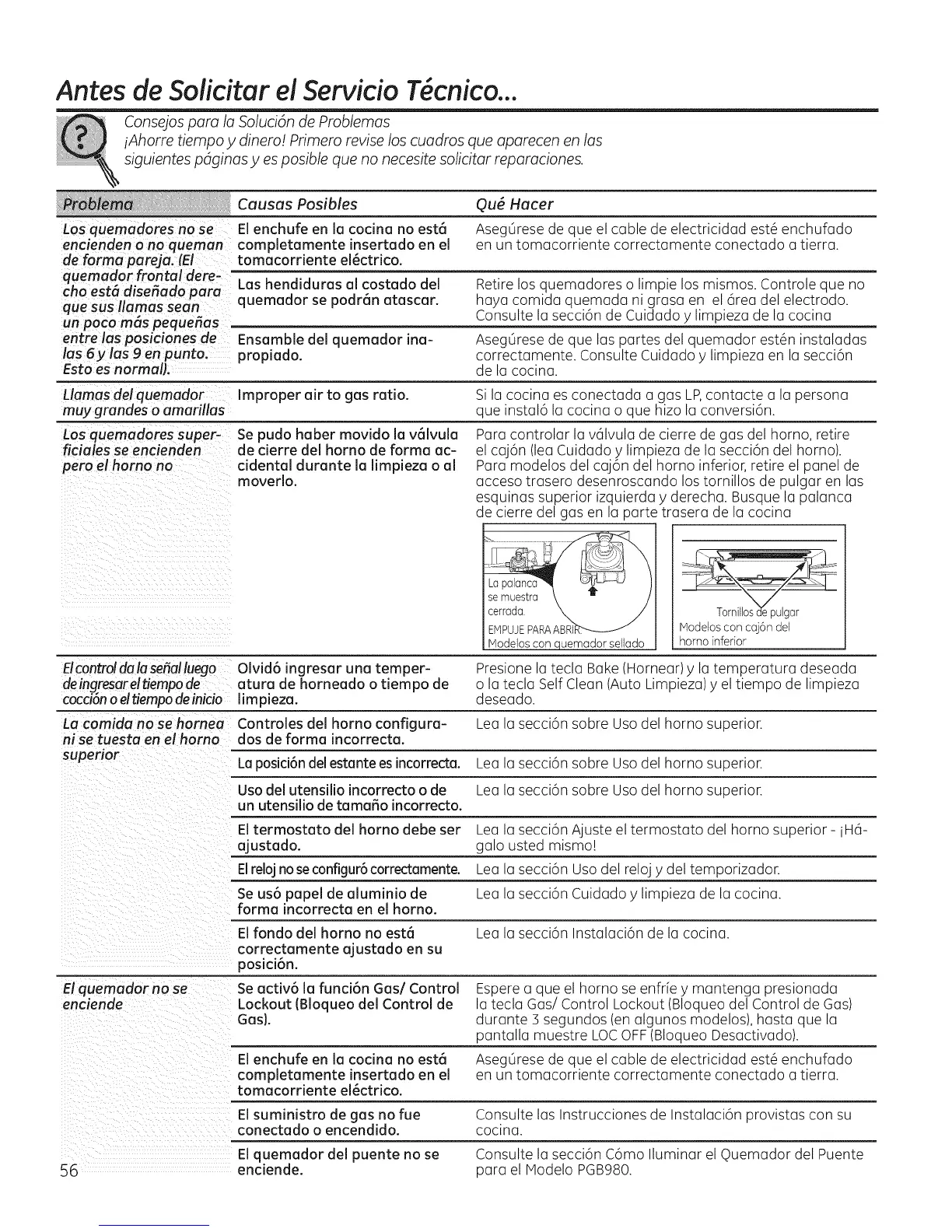 Consulte la secci6n C6mo Iluminar el q)uemador del Puente