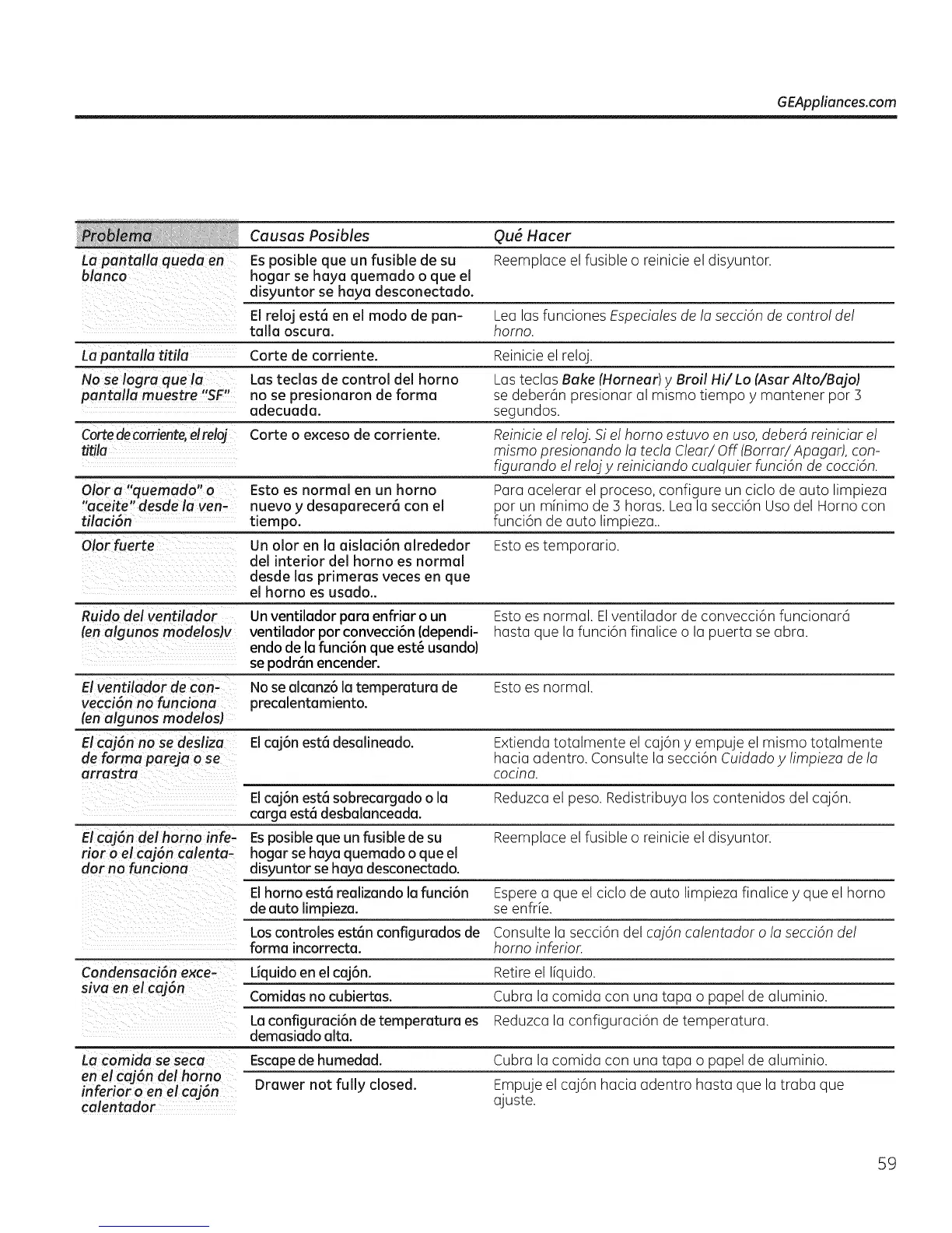 El caj6n del homo infe- Esposible que un fusible de su Reemplace el fusible o reinicie el disyuntor.