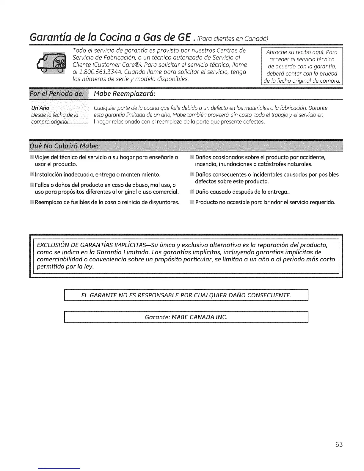 Garante: MABE CANADA INC.