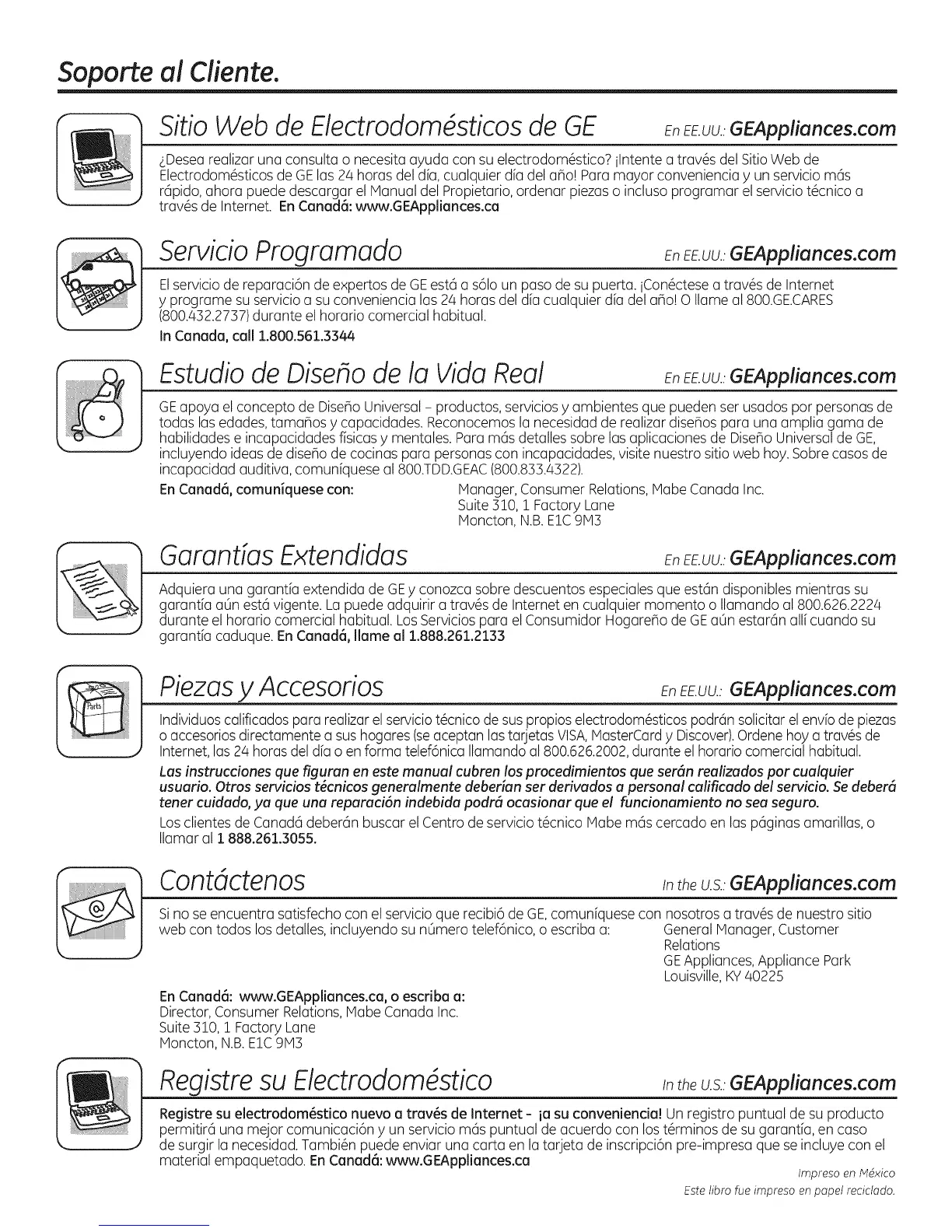 En Canad6: www.GEAppliances.ca, o escriba a: