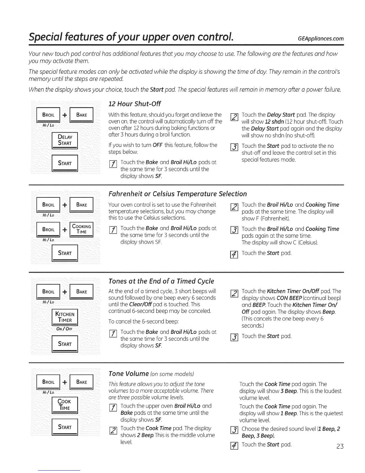 [] Touchthe Bake and Broil Hi/Lo pads at