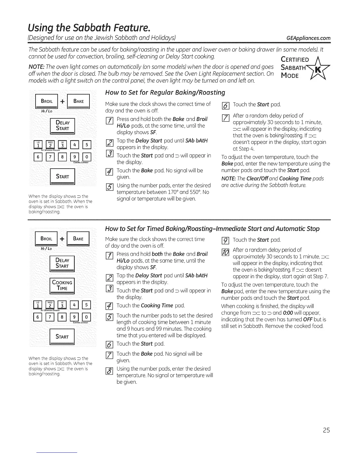 (Designed for use on the Jewish Sabbath and Holidays) GEAppliances.com
