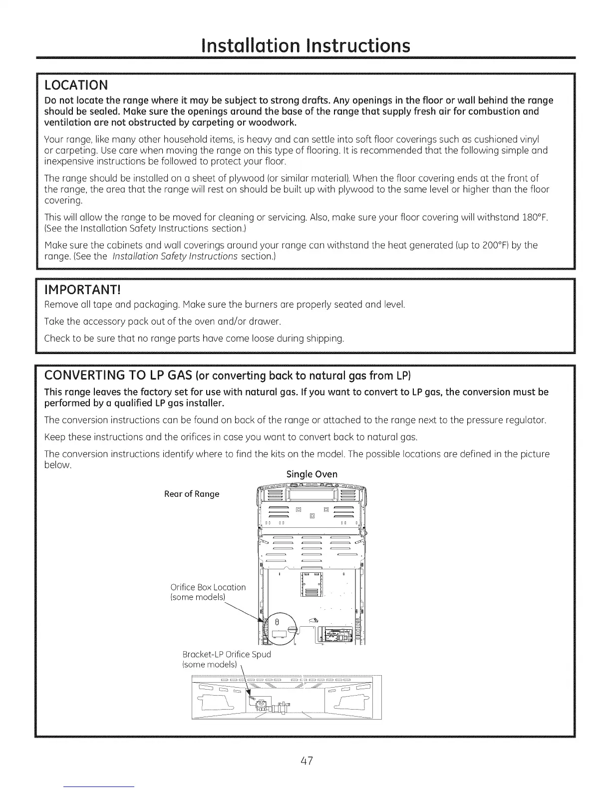 This range )eaves the factory set for use with natura) gas. If you want to convert to LPgas, the conversion must be