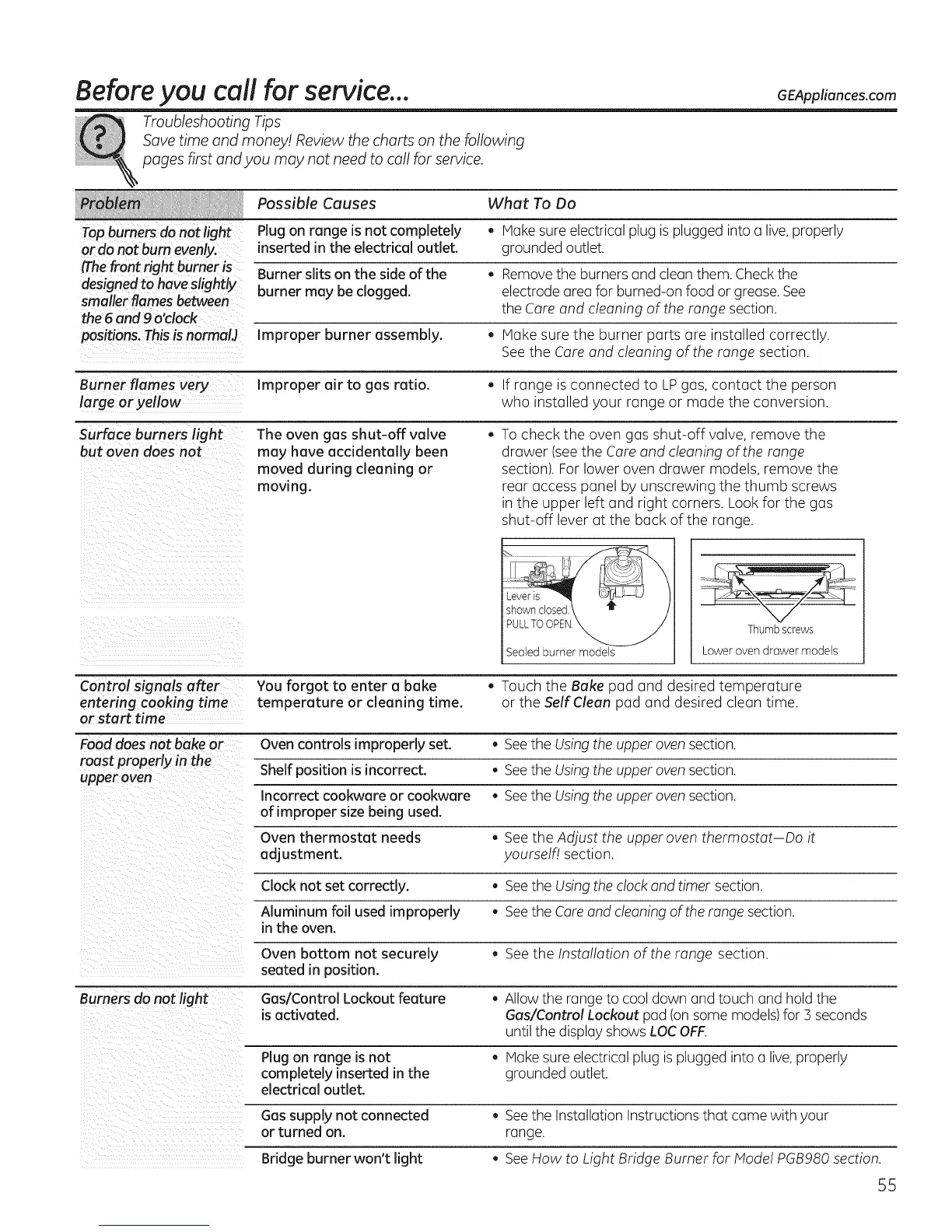 Top burners do not light Plug on range is not completely . Make sure electrical plug is plugged into a live,properly