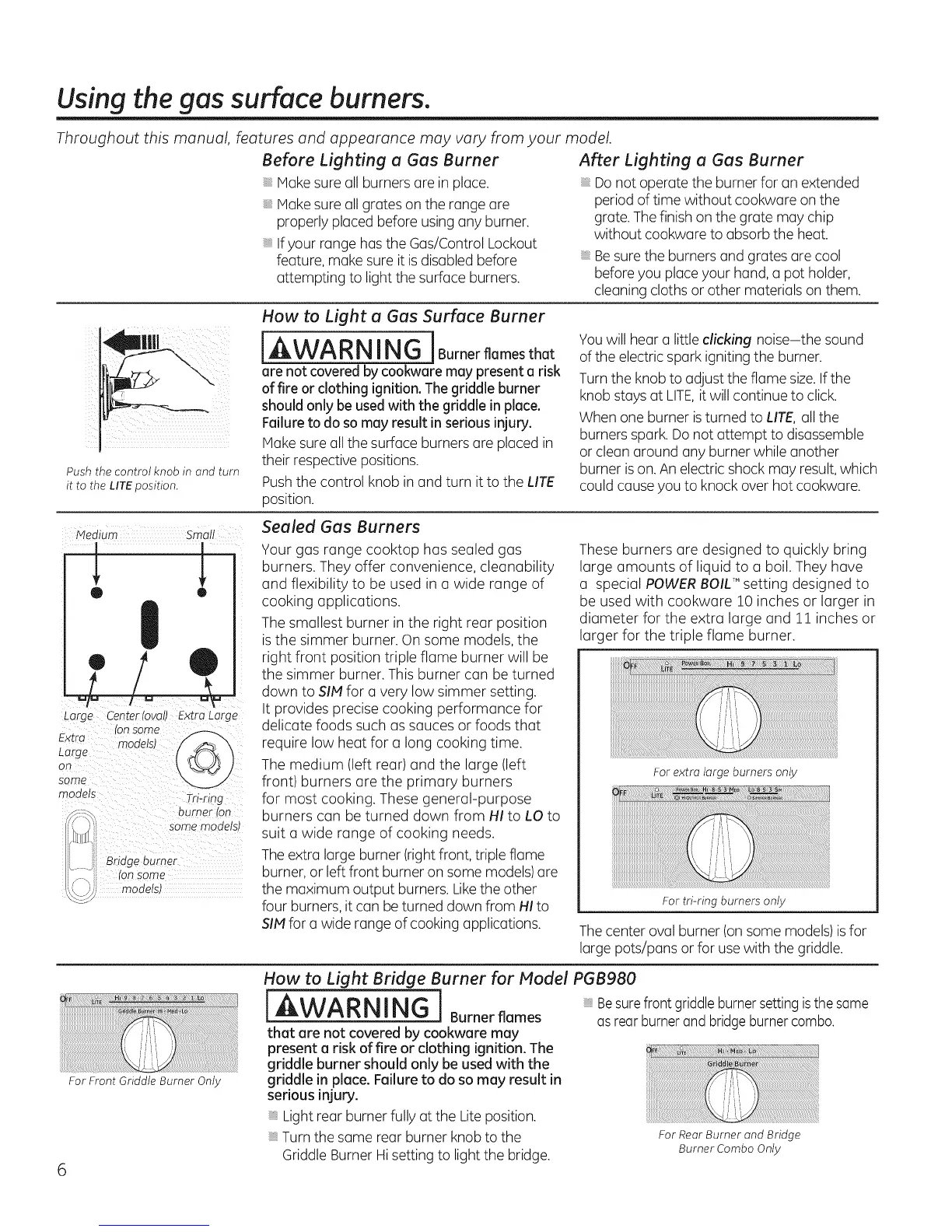 [AWARNING J Burner flames asrear burnerand bridgeburnercombo.