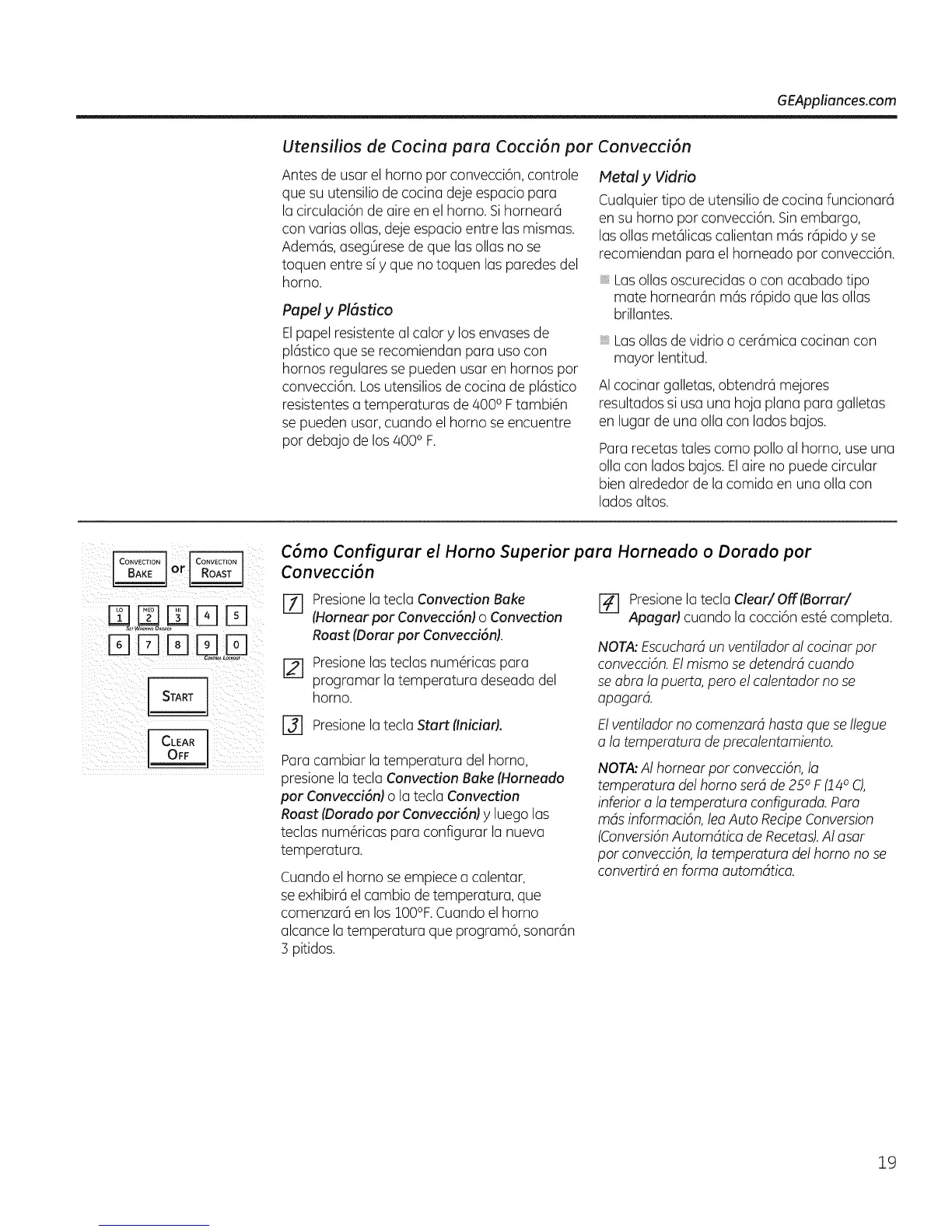 par Convecci6nJ o la tecla Convection
