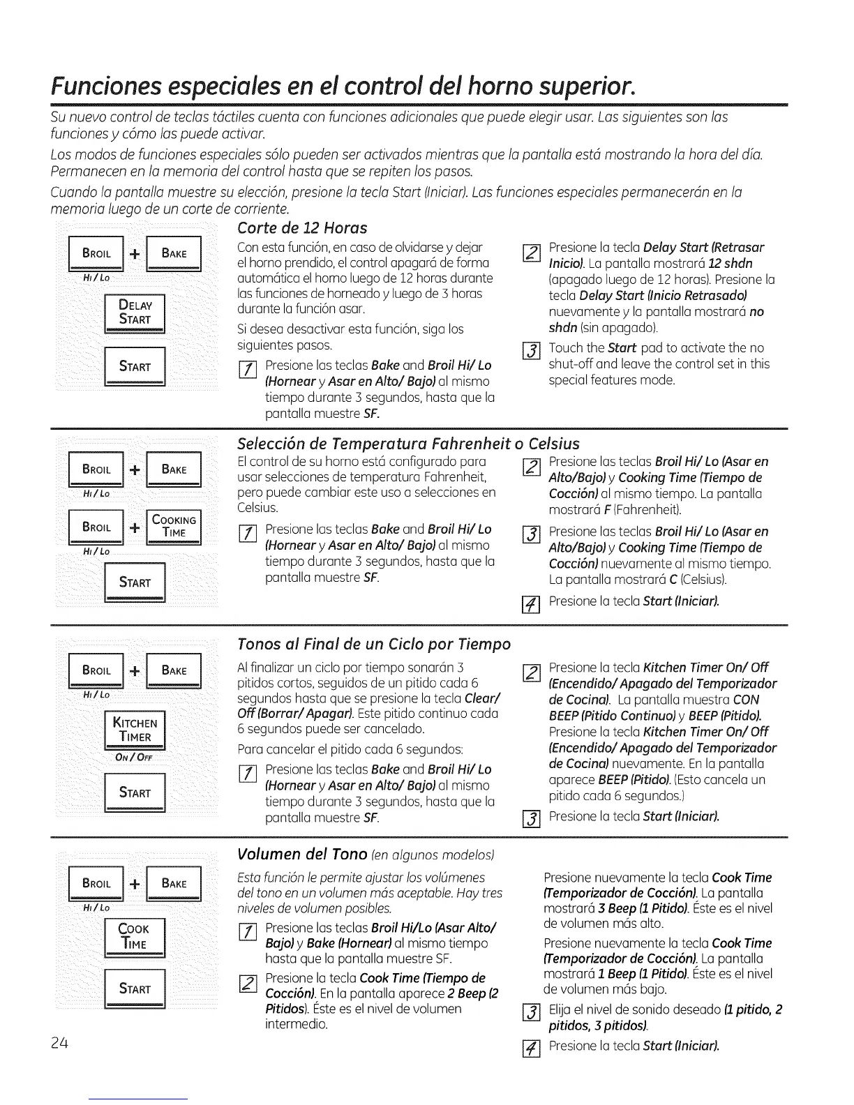 E_ Presione los teclas Bake and Broil Hi/Lo