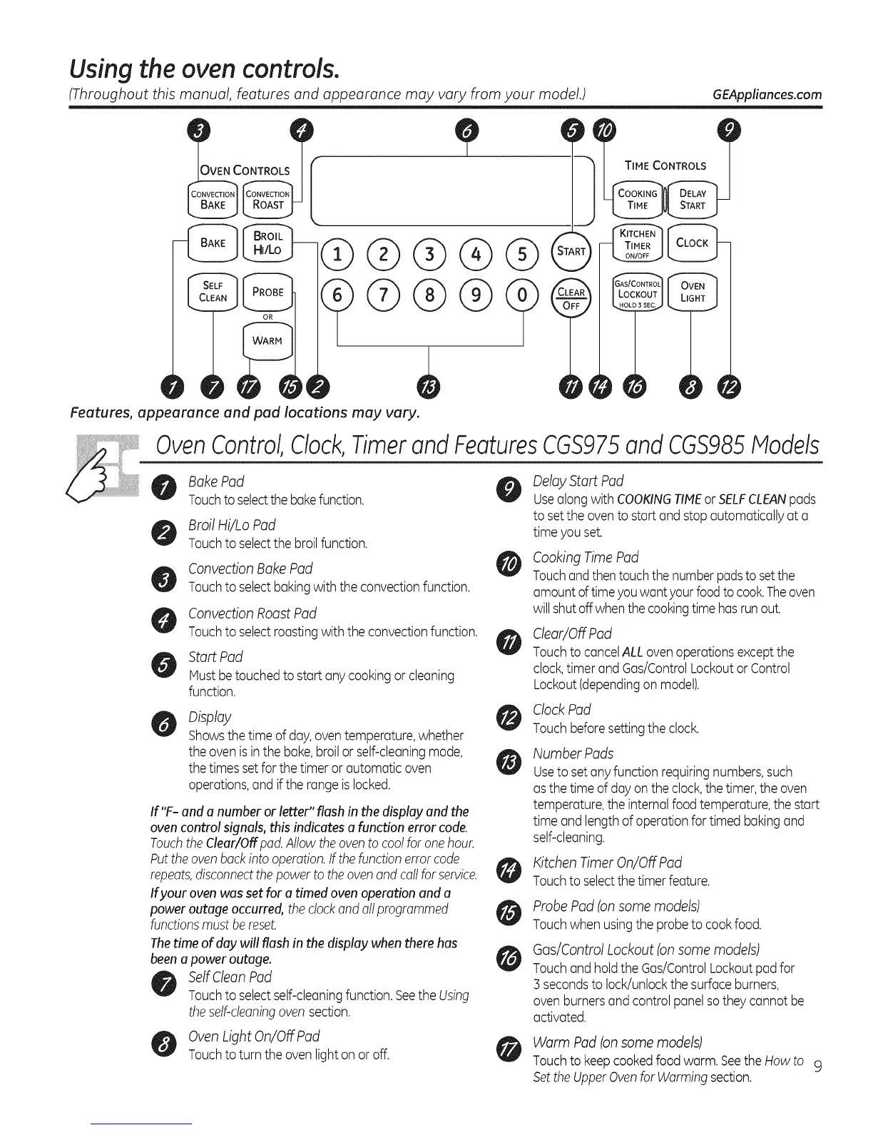 OvenControl,Clock,Timerand FeaturesCGS975and CGS985,Ulode/s