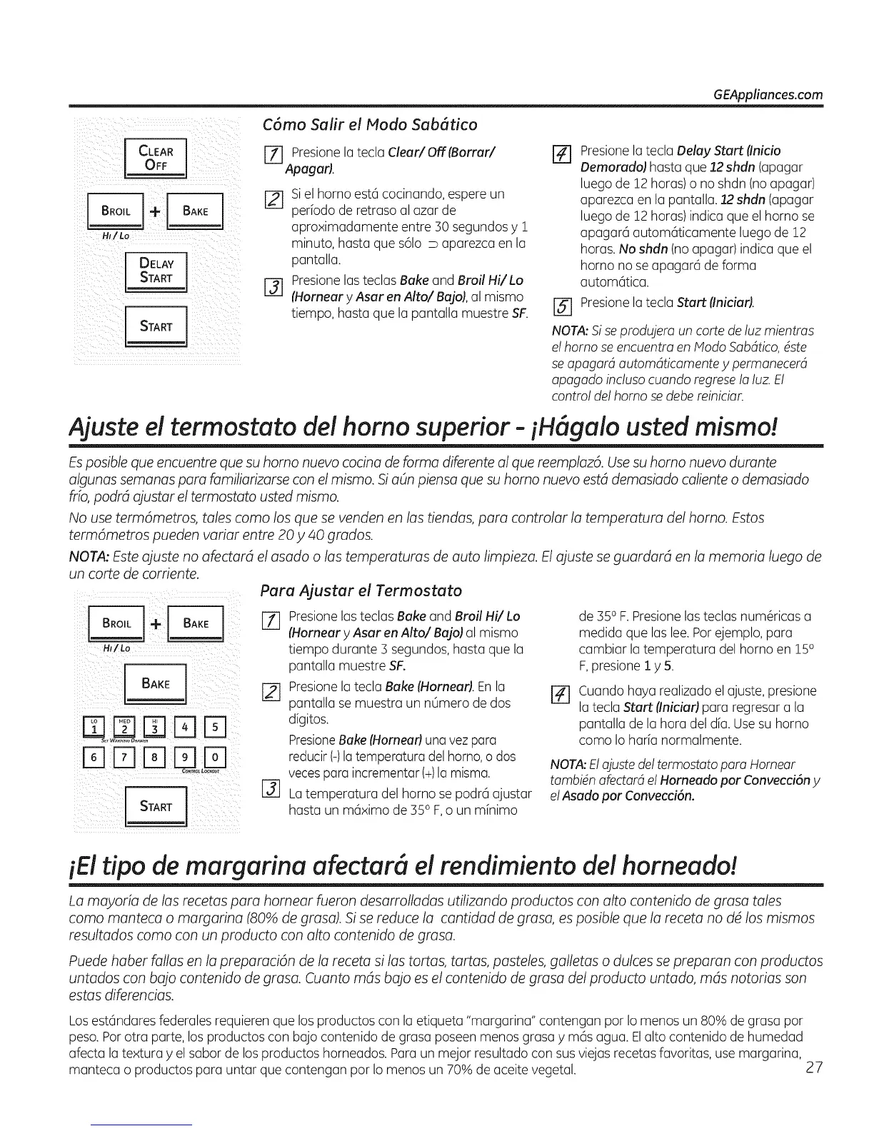 NOTA: Este ajuste no afectar6 el asado o los temperaturas de auto limpieza. El ajuste se guardar6 en la memoria luego de