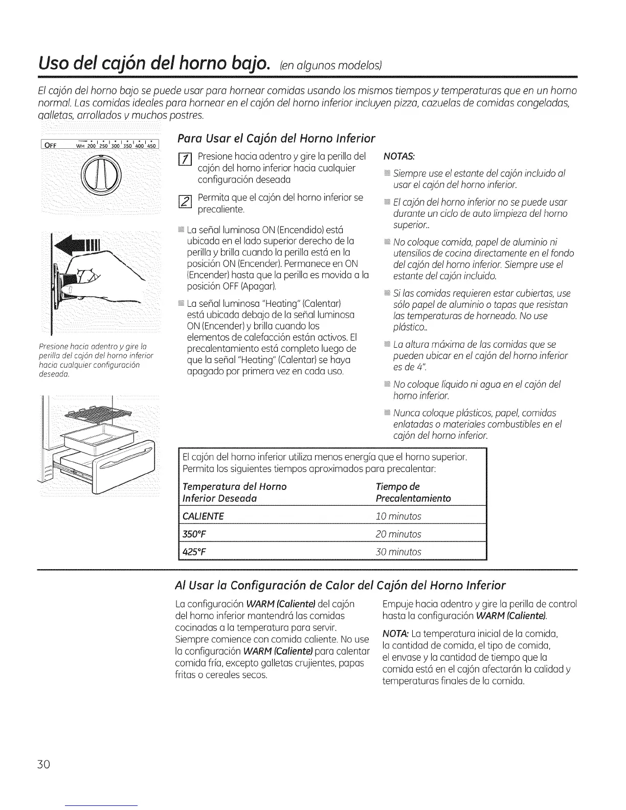 Para Usar el caj6n de! Horno Inferior