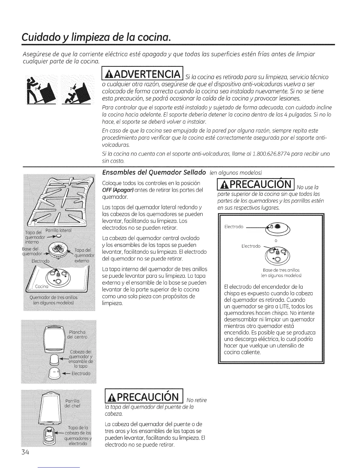 esta precaucidn, se podrd ocasionar la cafda de la cocina y provocor lesiones.