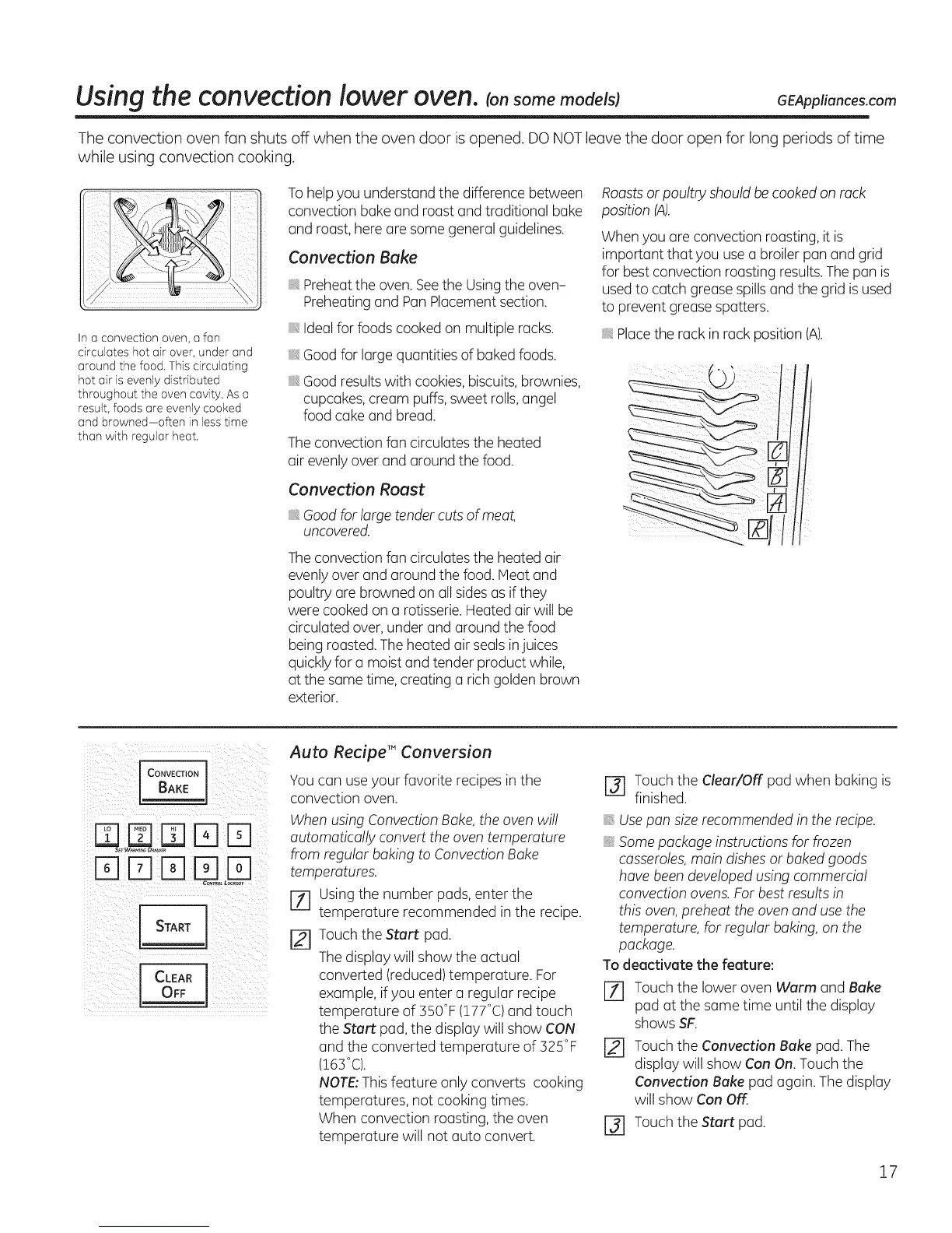 The convection oven fun shuts off when the oven door is opened. DO NOT leave the door open for long periods of time