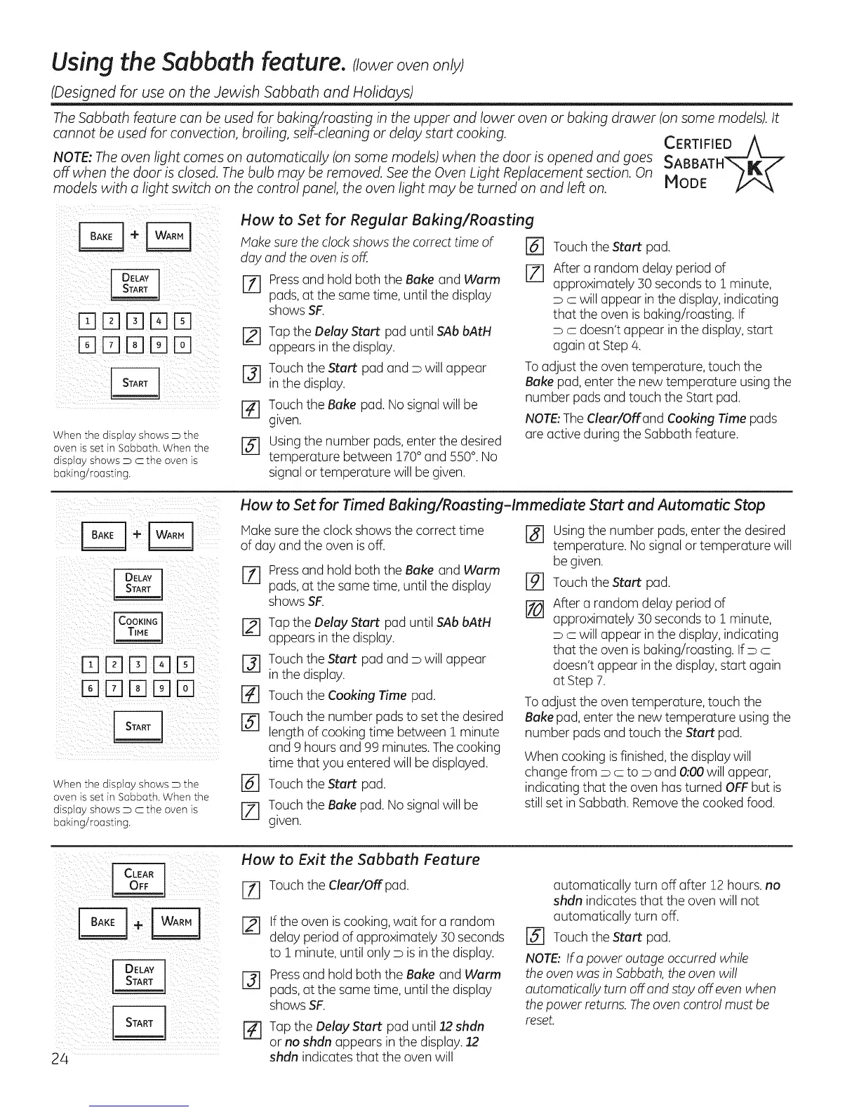 TheSabbath feature can be usedfor baking/roasting in the upper and lower oven or bakingdrawer (on some models).It