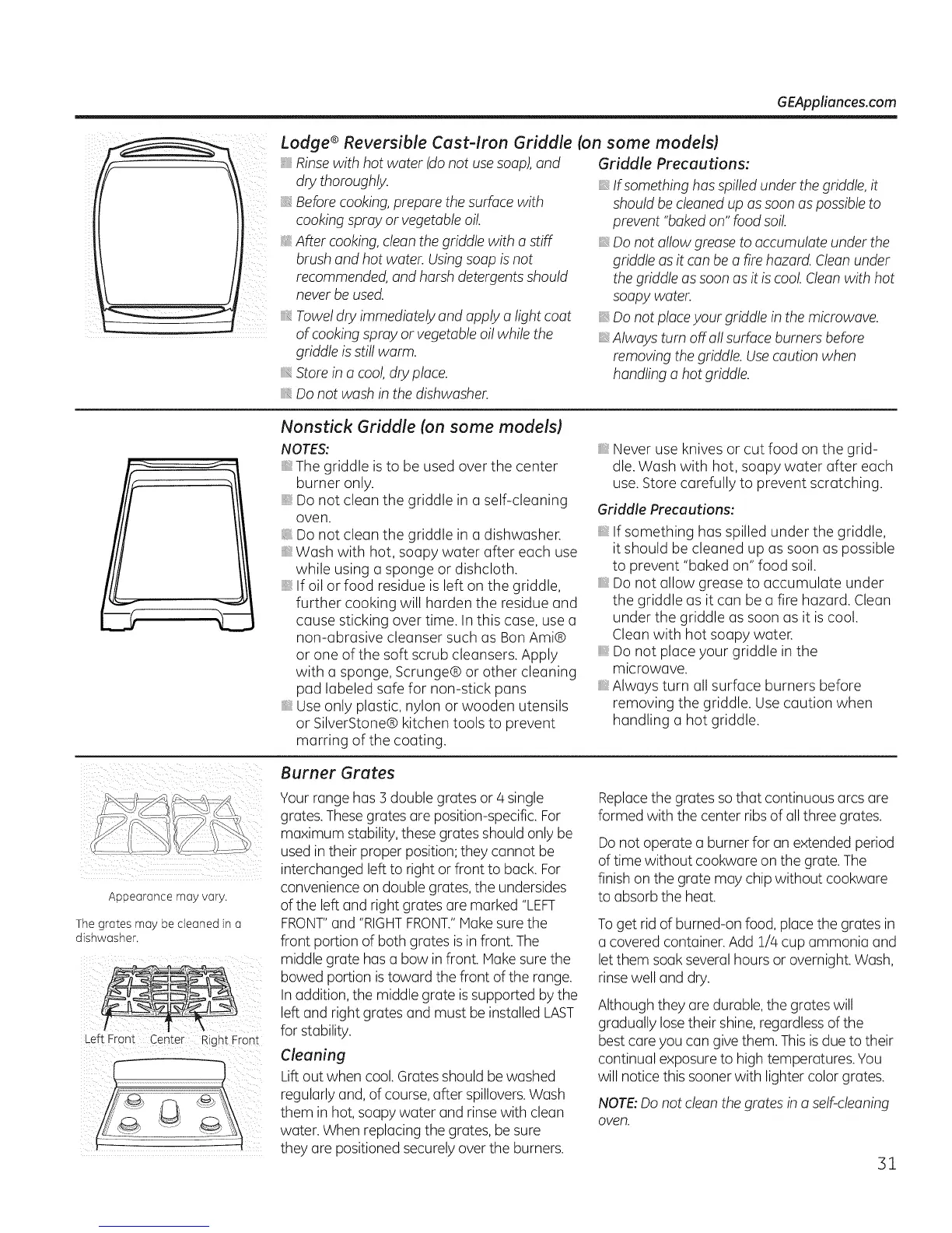 NOTE:Do not clean the grates in a self-cleaning